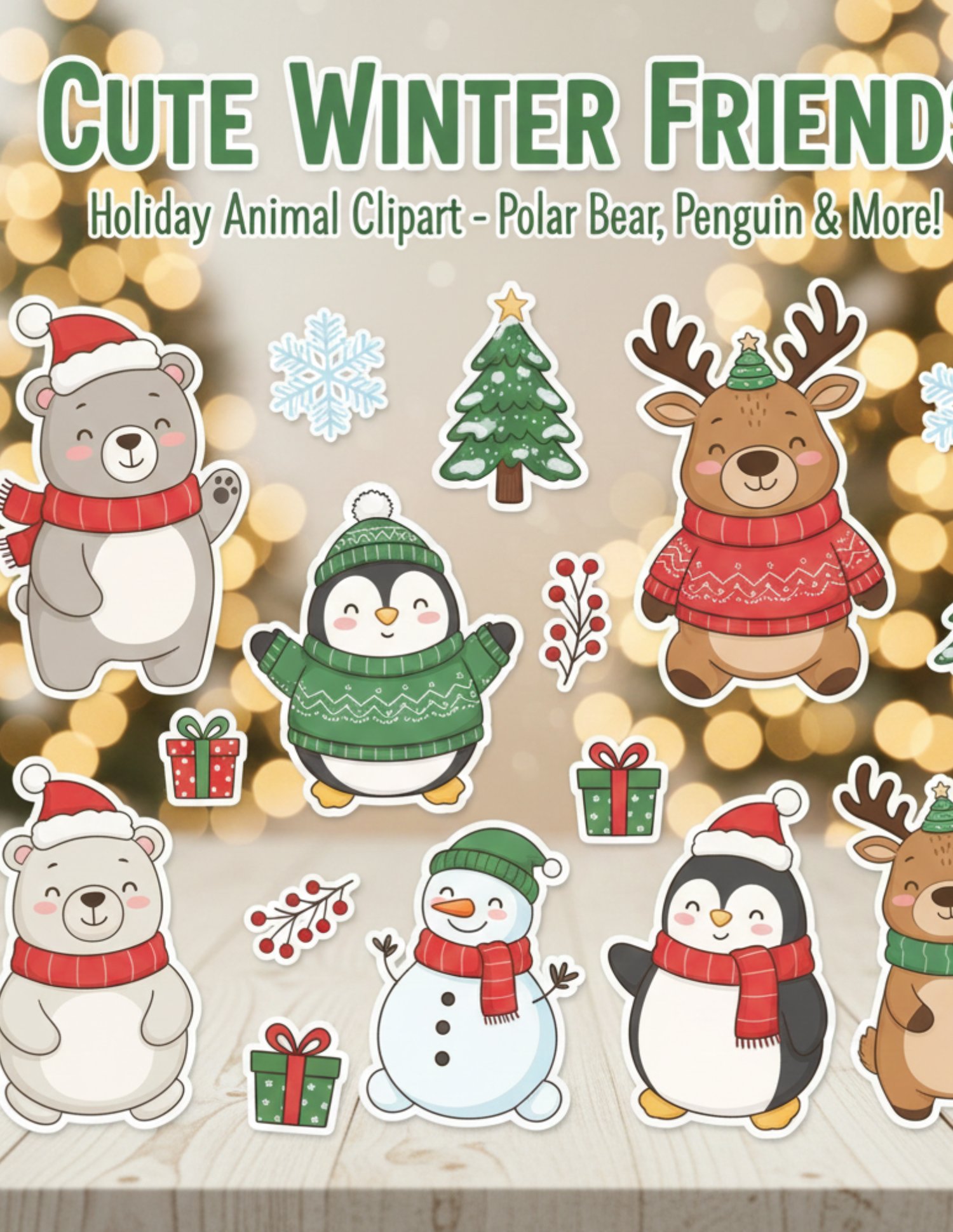 - Art Style: Charming Cartoon / Kawaii Christmas.