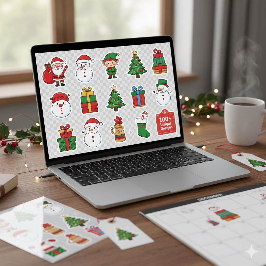Christmas Joy: The Ultimate Cute Sticker & Clipart Bundle.
