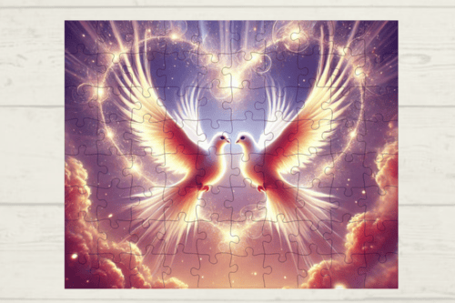 Celebrate the harmony of love with the "Love Dove Symphony" sublimation puzzle design. This beautiful design features graceful doves in flight, surrounded by soft clouds and heart motifs, symbolizing peace, love, and unity. A perfect choice for romantic projects, this design captures the essence of love in a serene and artistic way.