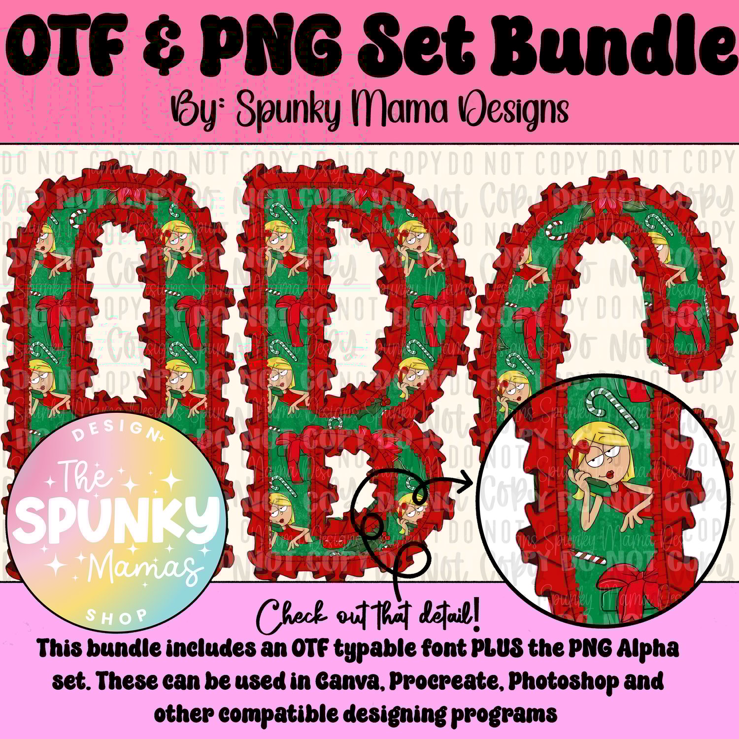 Lizzie Mcguire Christmas OTF Font and Digital PNG Alpha Set