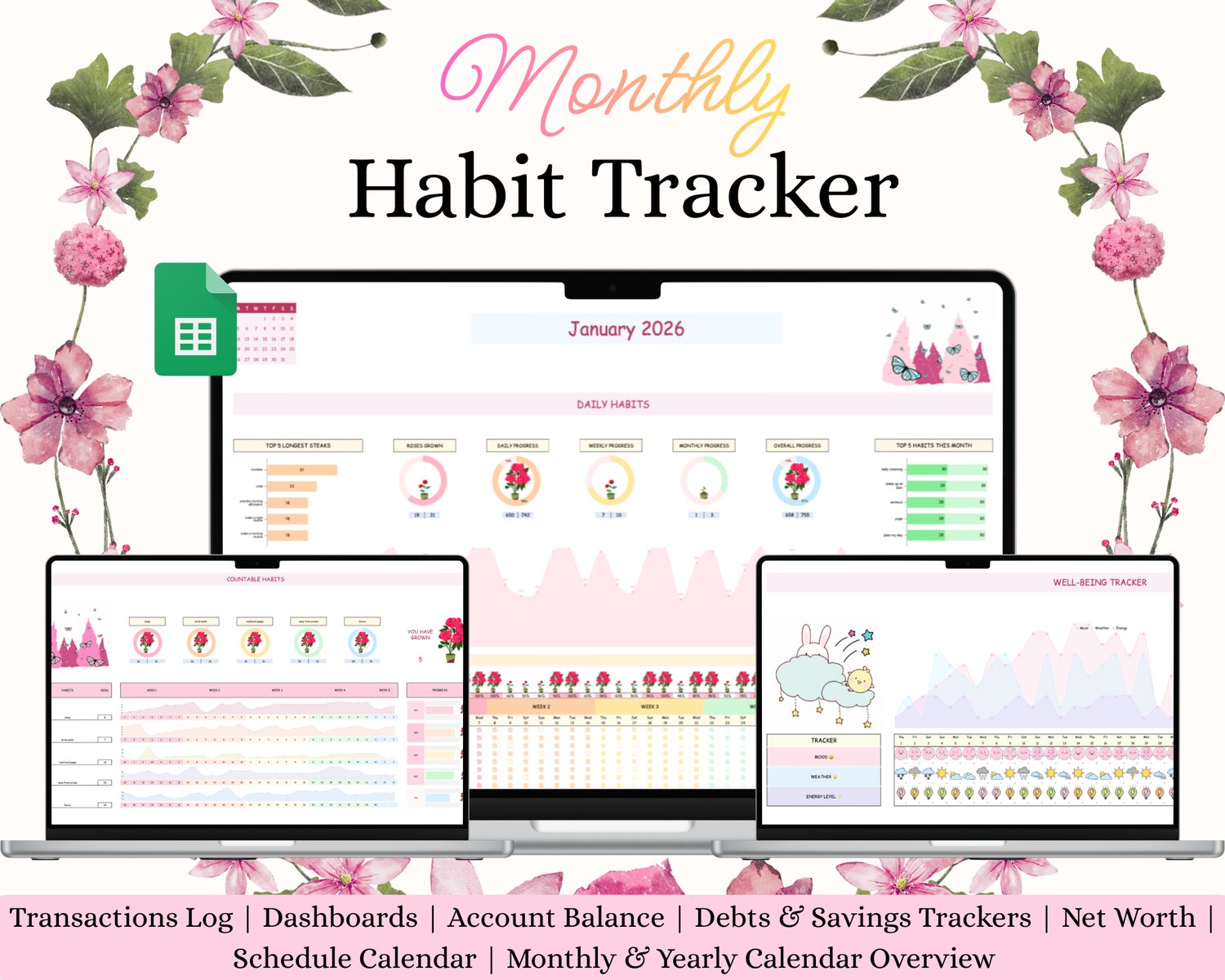 Habit Tracker Daily Weekly Monthly (Grow Roses 🌹)