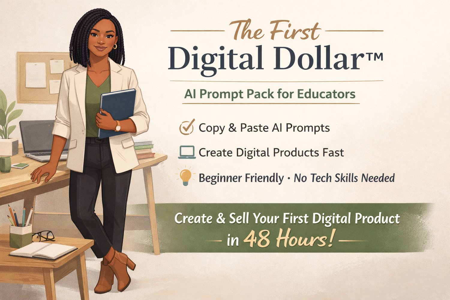 The First Digital Dollar™ is a beginner-friendly AI prompt pack designed specifically for educators who want to start earning outside the classroom—without quitting their job or learning complicated tech.