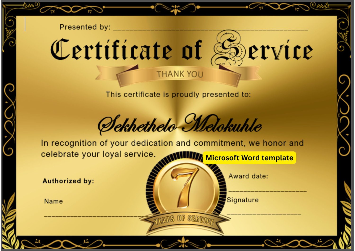 07 Years of service | Editable Microsoft Word template | Landscape G0103L070007