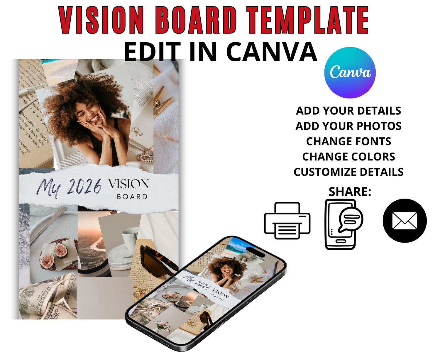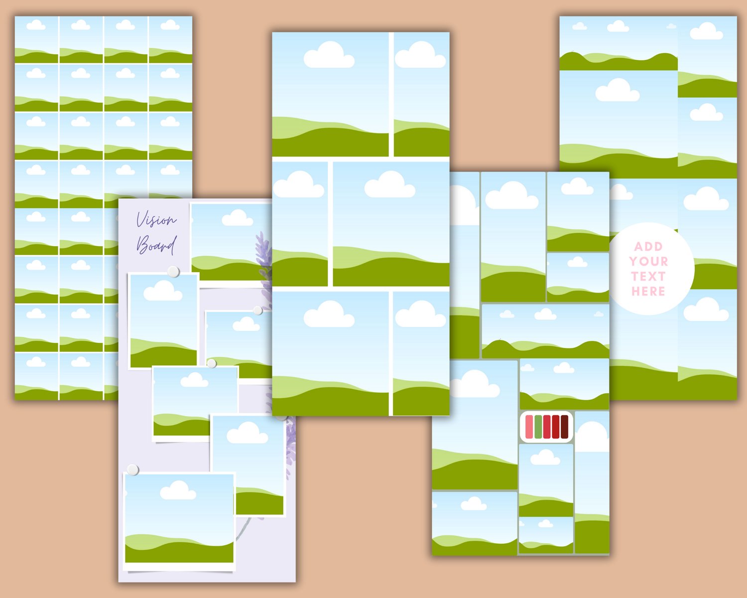 This Editable Cellphone Vision Board template comes with 11 pages in total and is fully customizable in Canva. The templates can be used by kids, moms, dads, or anyone who has a working knowledge of Canva. Just upload your personal pictures, quotes etc, (or Canva has FREE elements which you can also use) and create a Vision board that is 100% YOU! As they are fully customizable, they can be reused for different Goals, events, themes, or seasons.