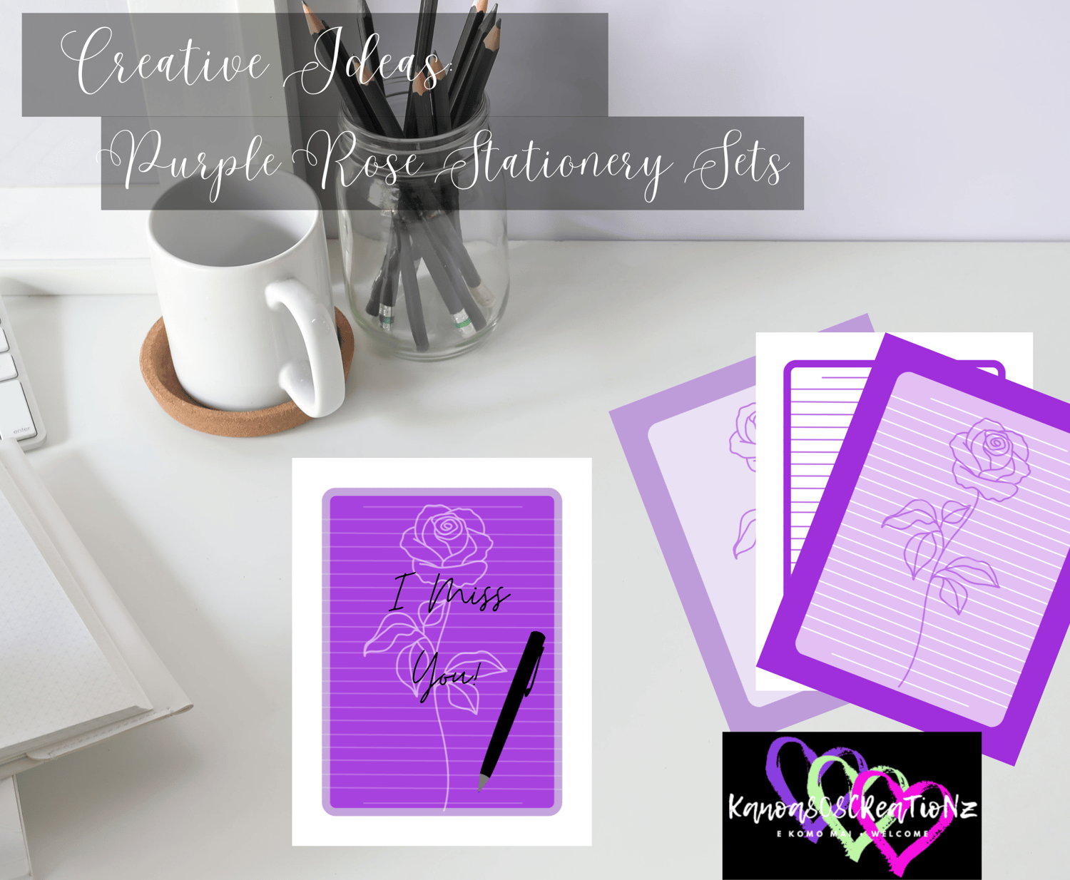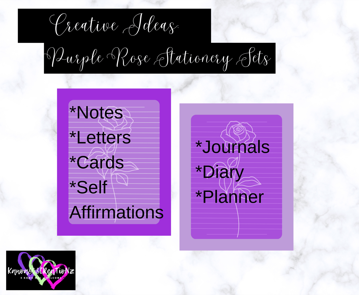 Digital Printable & Downloadable: Purple Roses Stationery Set