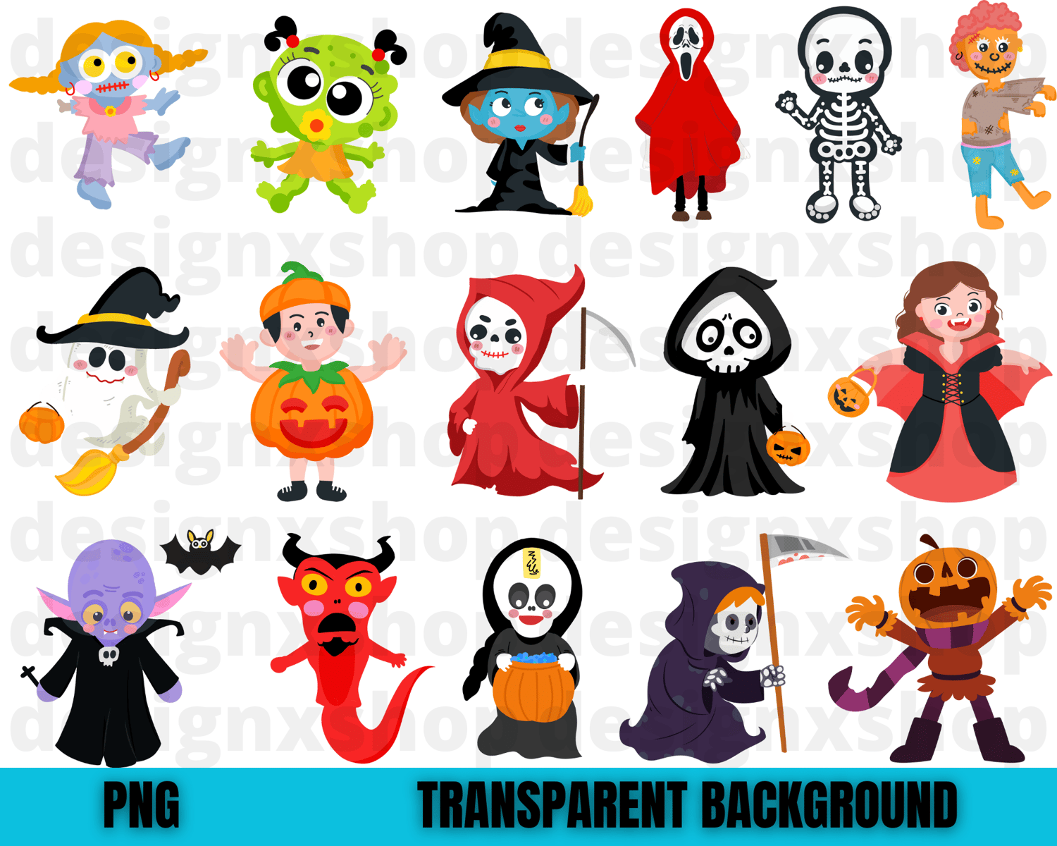 Halloween kids costume clipart | Halloween Character Svg Bundle | Halloween Clipart | Trick or Treat costume | Halloween svg | SVG and PNG