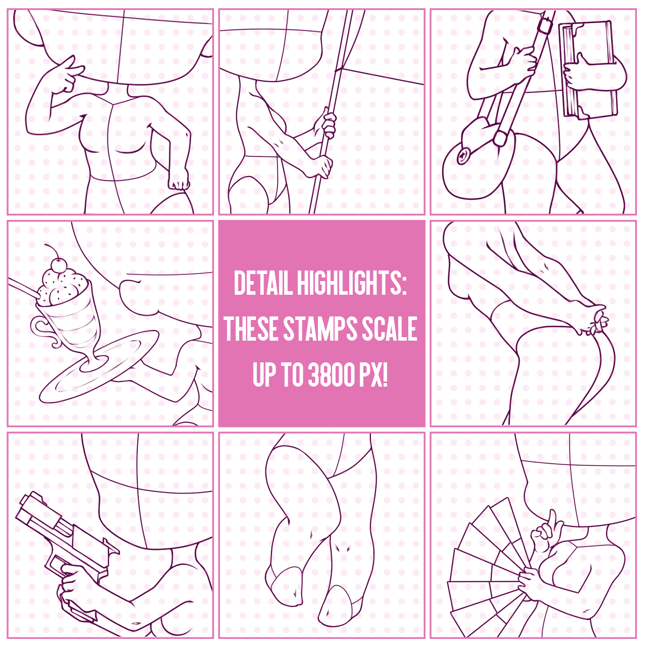 - You cannot copy, trace, or heavily reference my poses to create your own poses, stamps, brushes, templates, or other similar resources that you intend to sell or distribute, including pixel bases.