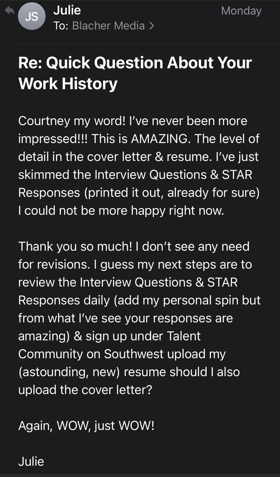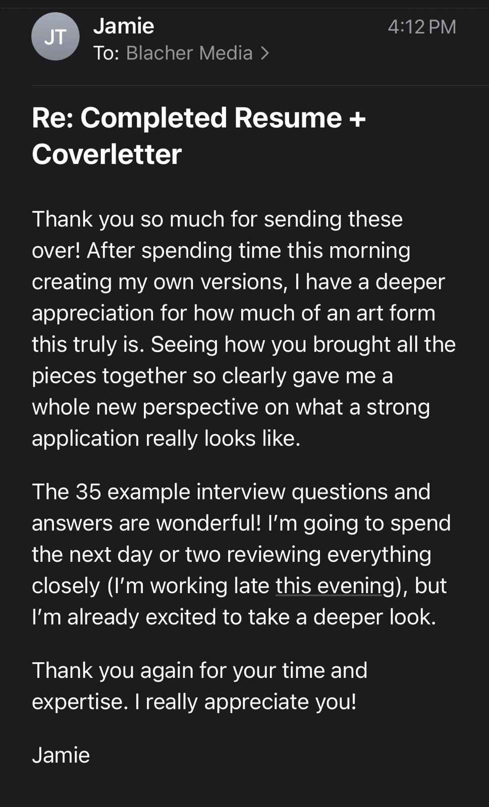 If you want your application to stand out, your interview answers to land, and your confidence to be unshakeable, this is the most comprehensive option I offer.