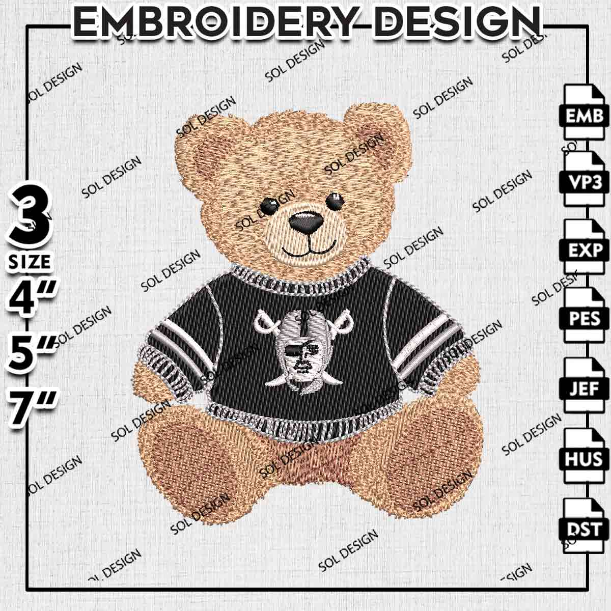 Las Vegas Raiders Team Teddy Bear Logo Embroidery Designs, NFL Las Vegas Raiders Embroidery Files, NFL Raiders Logo Embroidery, National Football League Machine Embroidery Design, Cute Teddy Bear Sport Designs, Digital Do