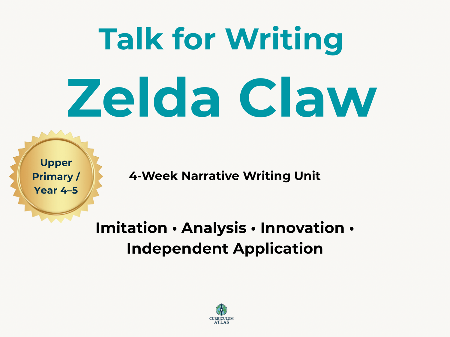 This 4-week Talk for Writing narrative unit is built around the adventure story Zelda Claw and is designed for Upper Primary / Year 4–5.