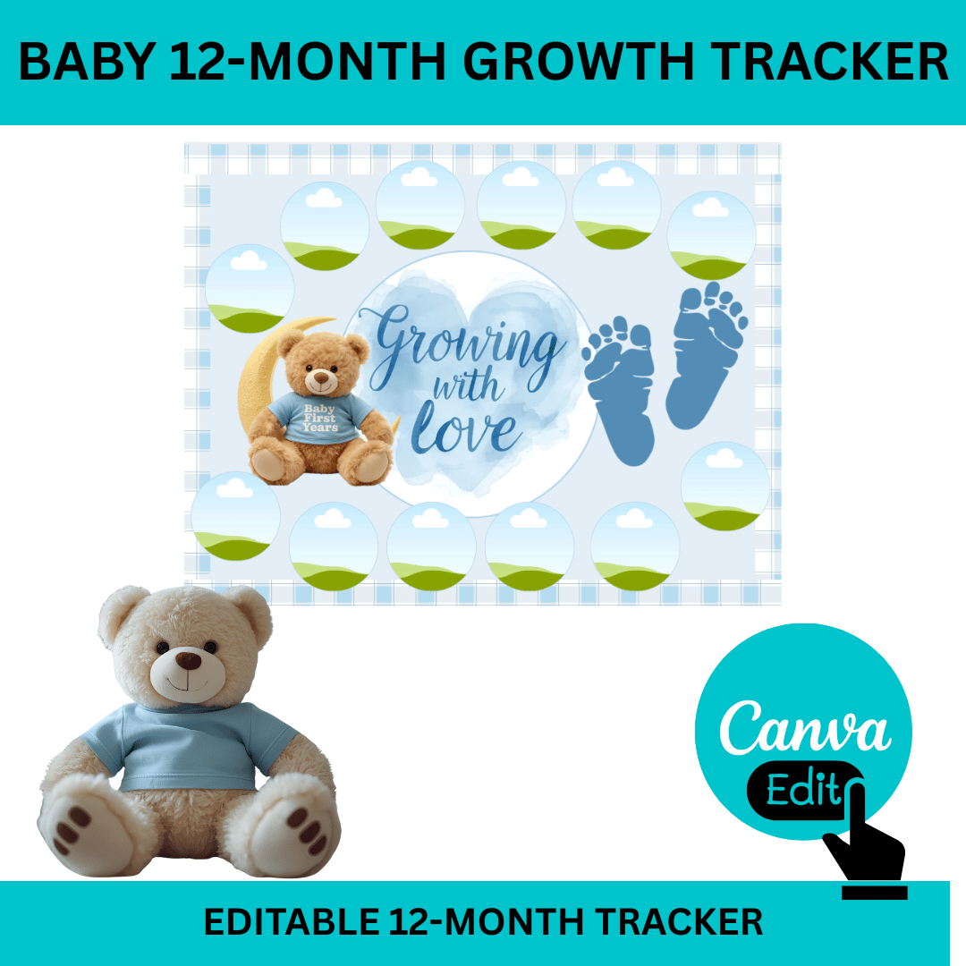 Growing With Love: Baby Growth Tracker (Editable 12-Month Canva Template)