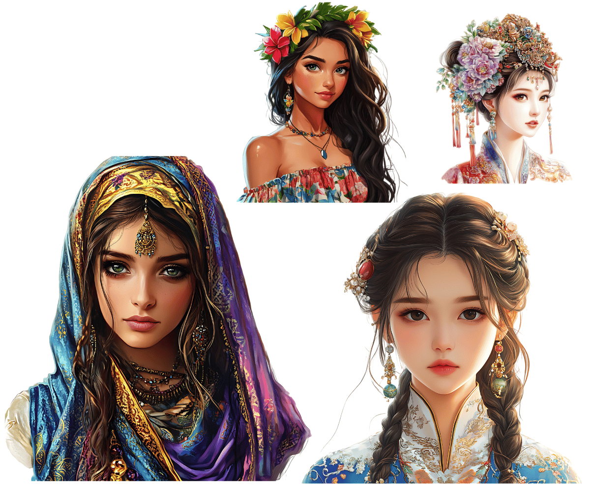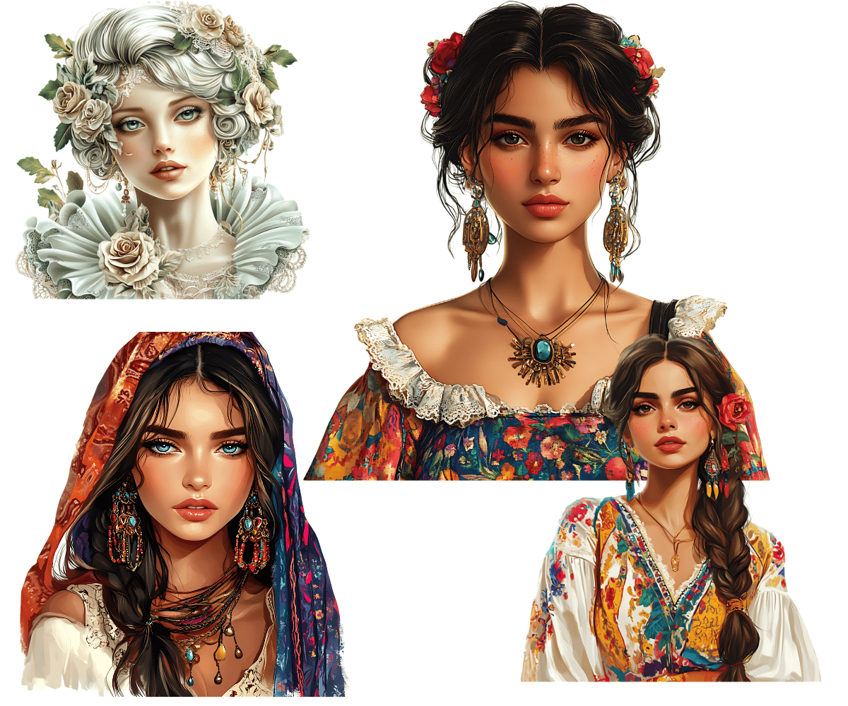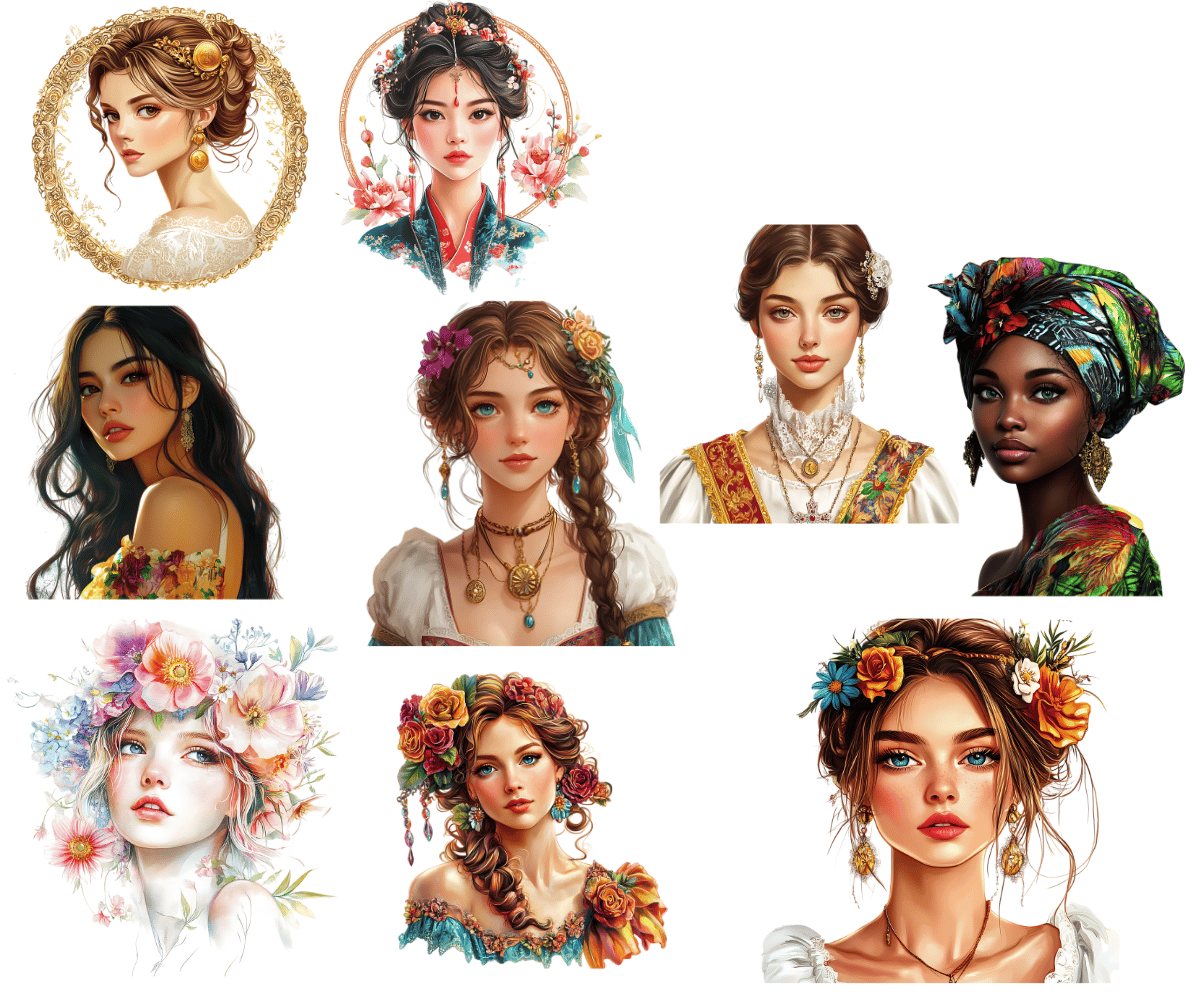 Elevate your crafting projects with our Diverse Women Clipart. Perfect for instant download and sublimation design. Clipart includes elegantly styled elements suitable for crafting projects in gorgeous rich tones evocative of the beautiful aesthetic. Ideal for digital art, printable clipart, and crafting, this set is a must-have for creating charming arts and crafts designs. In fact, cut them out and place them on your planners to make for an extra special gift for an organizer.