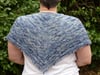 Approximately 420-840 yards of fingering weight yarn in a solid, semi solid or speckled yarn. The textured stitches shine best with a subtle color way but the larger size works very well with a more vibrant color way for the rest of the shawl body, as shown in the larger sample. The small sample was knit using one skein of Djinni sock from Dragonfly Fibers in their color way “Boardwalk Lights”. The larger sample was knit using two skeins of Pixie single ply from Dragonfly Fibers in their color ways “Starry Night” and “Golden Compass”.
