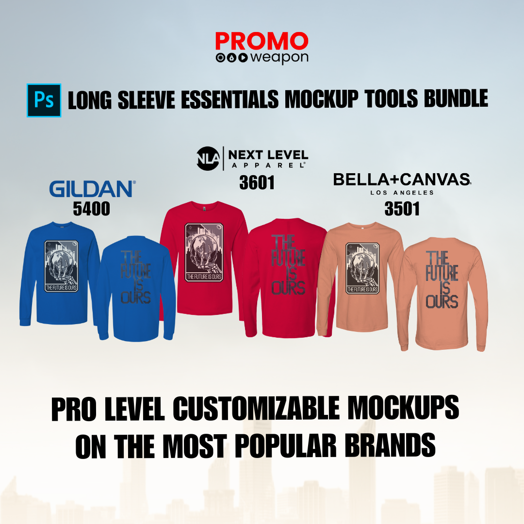 From cool-weather drops to premium client proofs, the Long Sleeve Essentials Pack gives you the tools to create clean, high-impact mockups using three of the most popular long sleeve tees in the print world.