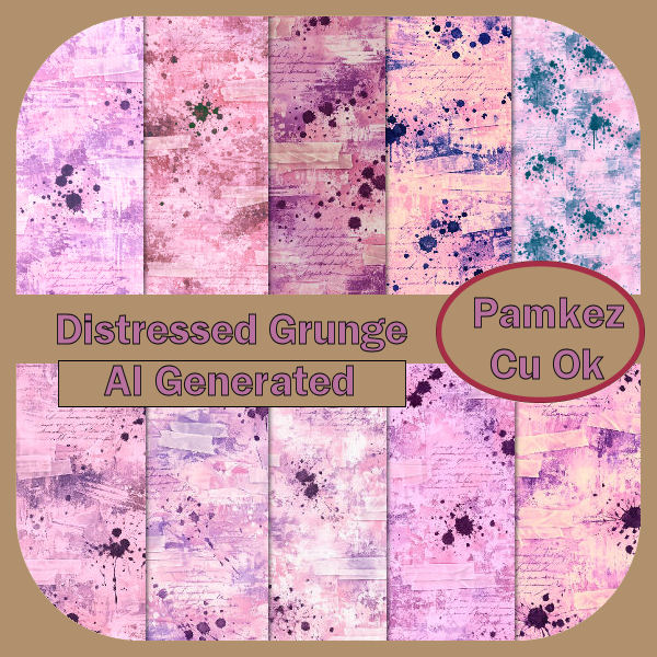 Add a splash of edgy elegance to your creative projects with this AI-generated Distressed Grunge Digital Paper Pack. Featuring 10 high-resolution backgrounds in dreamy shades of pink, purple, and blue, each sheet is layered with artistic ink splatters, handwritten script overlays, and vintage paper textures for a truly unique look.