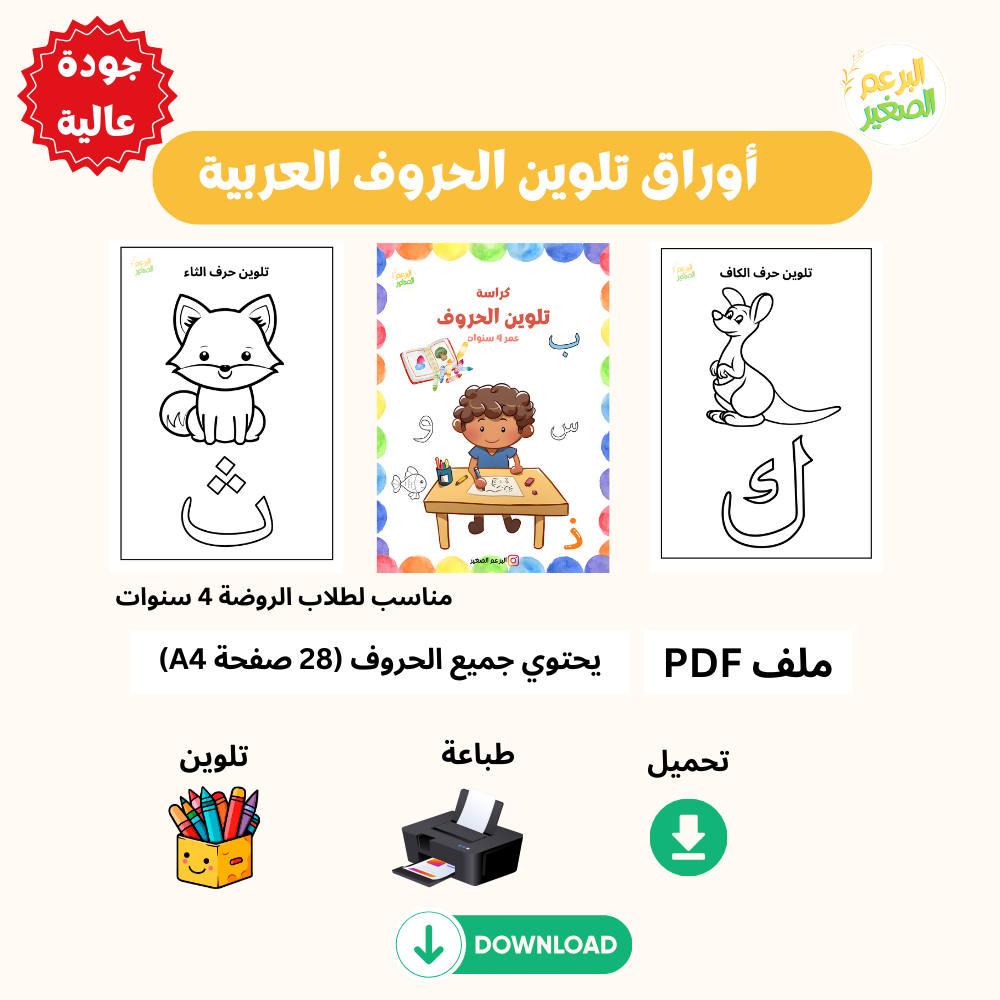 أوراق عمل تلوين الحروف العربية