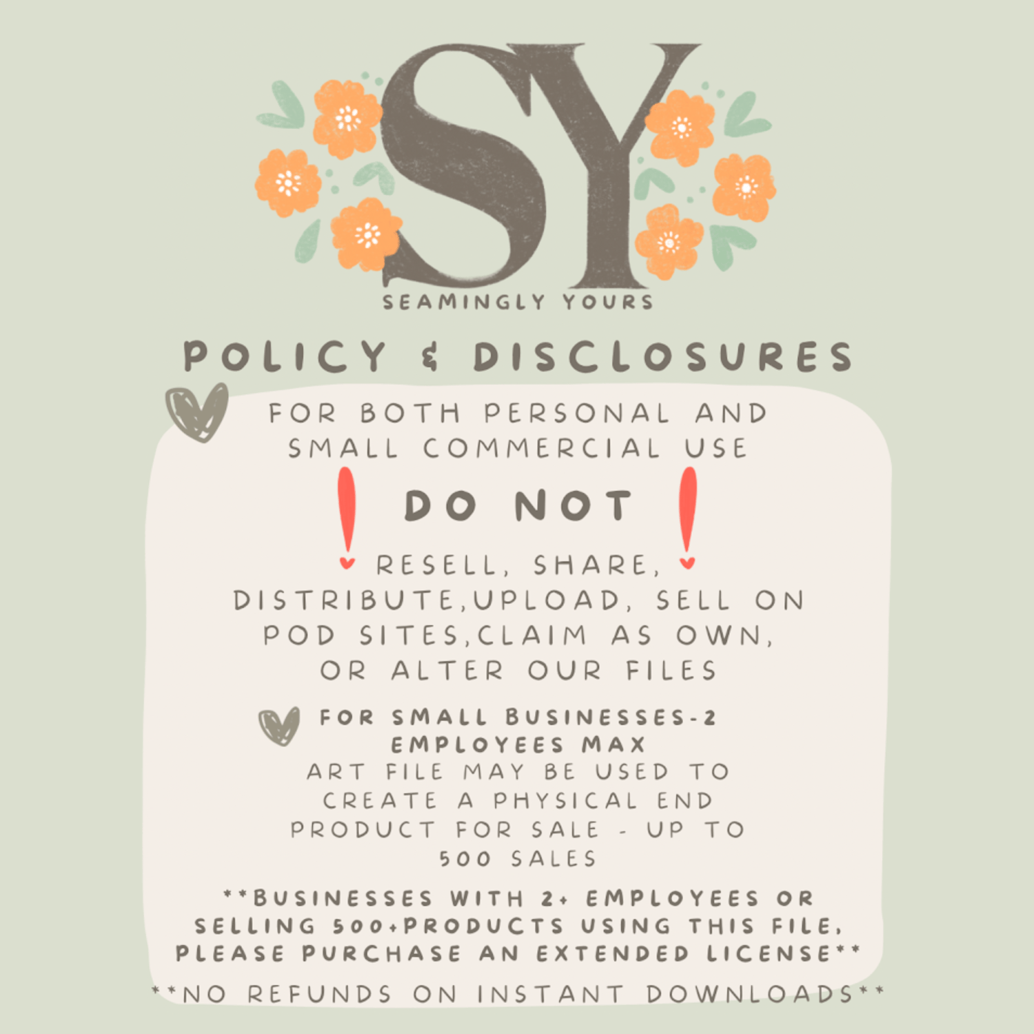 All designs are original artwork created by me. Because my art is hand-drawn and digitally prepared, there may be natural variations, textures, or small imperfections in the artwork. These are intentional and part of the creative style.