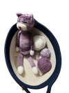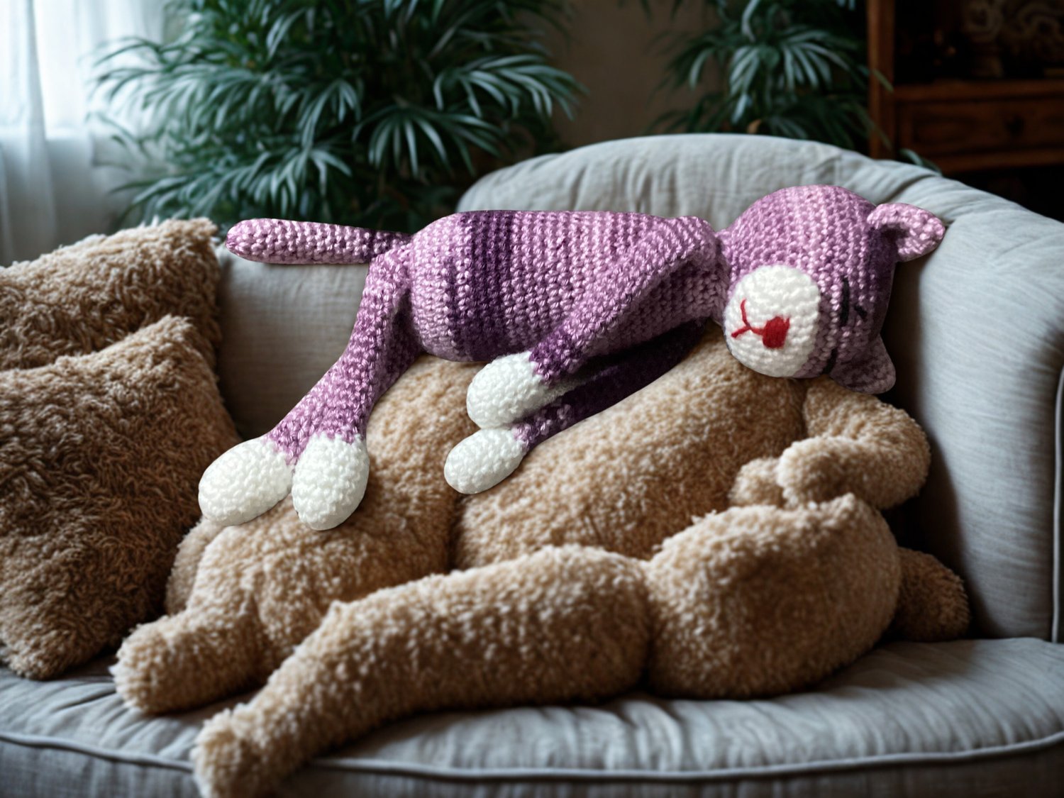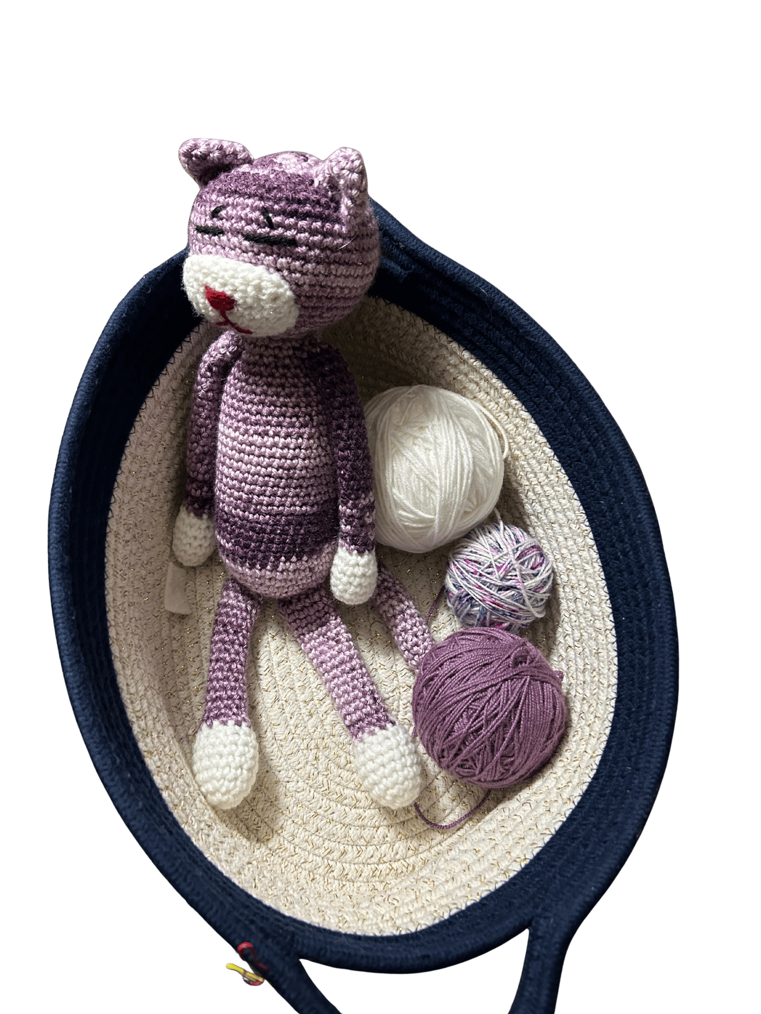 This one-of-a-kind handmade crochet sleeping cat was worn out after playing with the balls of yarn. Add her to your collection or give her as a gift.