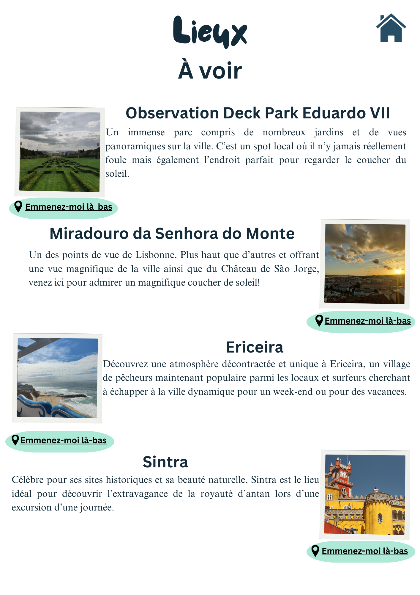 - Ericeira, un petit village de pêcheurs, maintenant populaire pour son surf et ses vues côtières époustouflantes