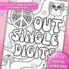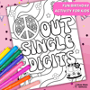 Celebrate the big first double-digit birthday with this groovy “Peace Out Single Digits” coloring page.