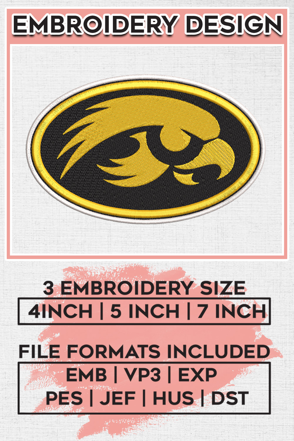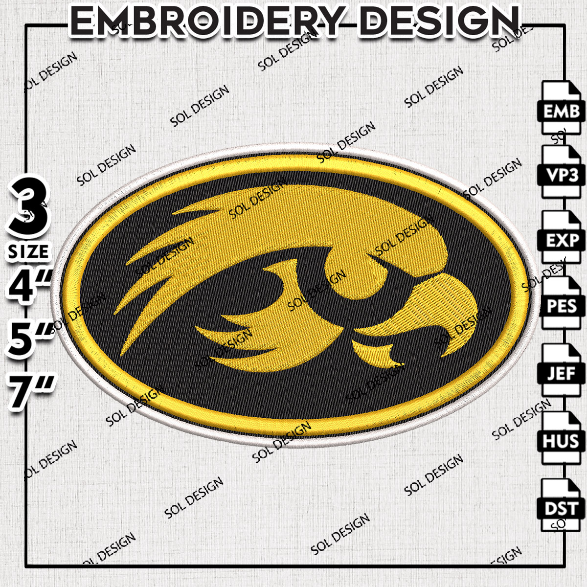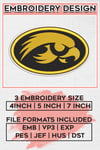 Iowa Hawkeyes NCAA College Football Team Mascot Logo Embroidery Files, NCAA Iowa Hawkeyes Team Embroidery, NCAA College Football Teams, Iowa Team Emroidery, 3 sizes, Machine embroidery designs, Digital Down