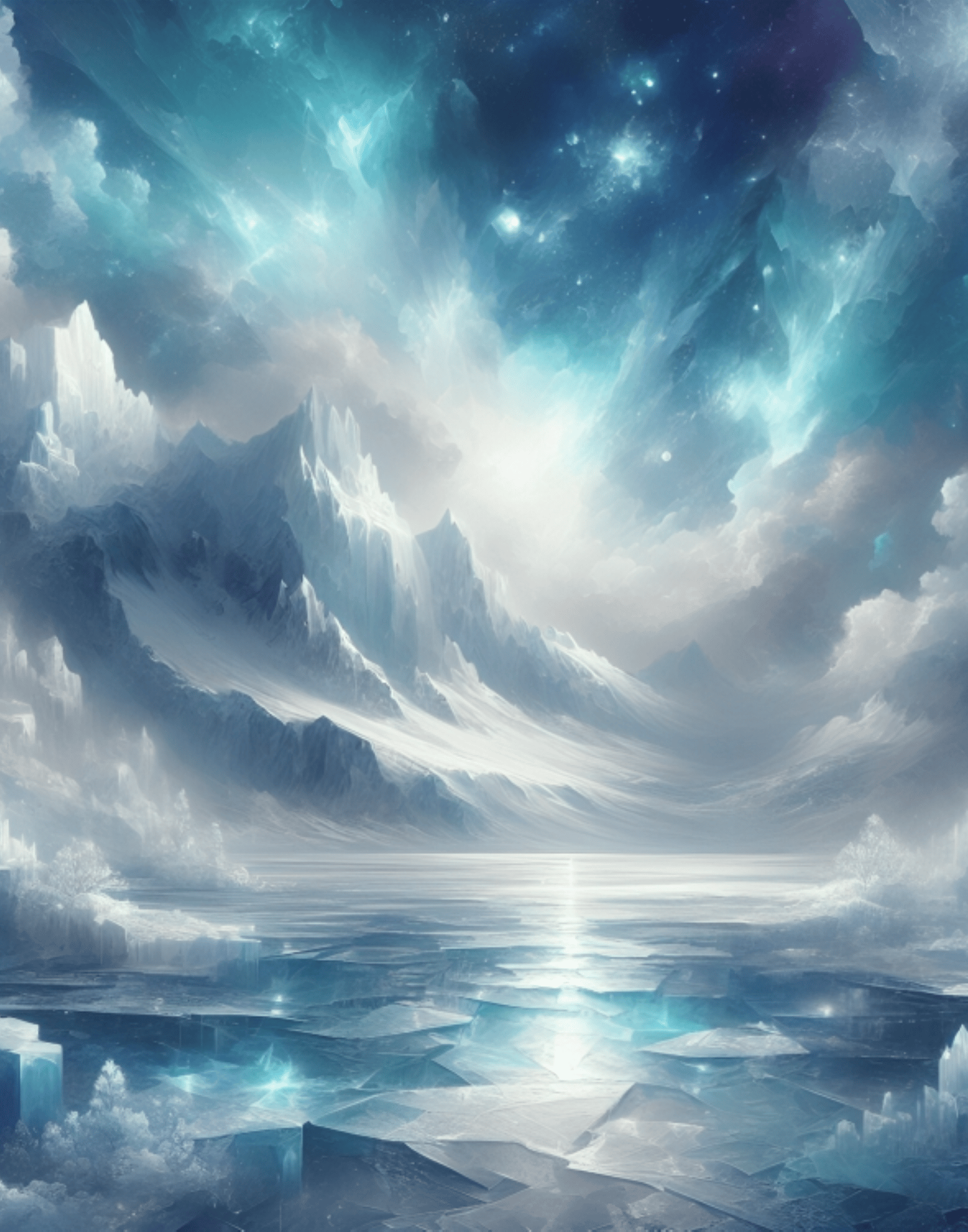 Frozen Landscape, Frozen Lake River Moonlight night, Antertica, Ice Cave, Painting.