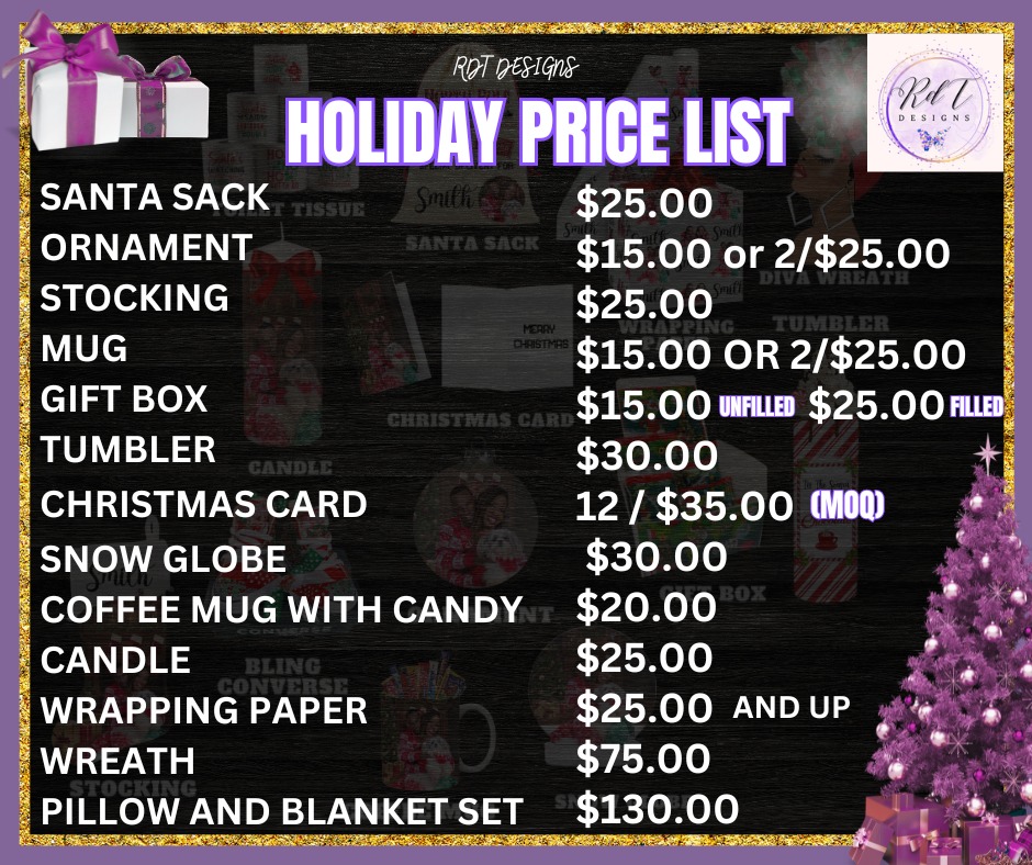 Christmas Pricing Sheet