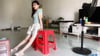 Miki let go of a pair of crutches and walked on her own hands and legs.