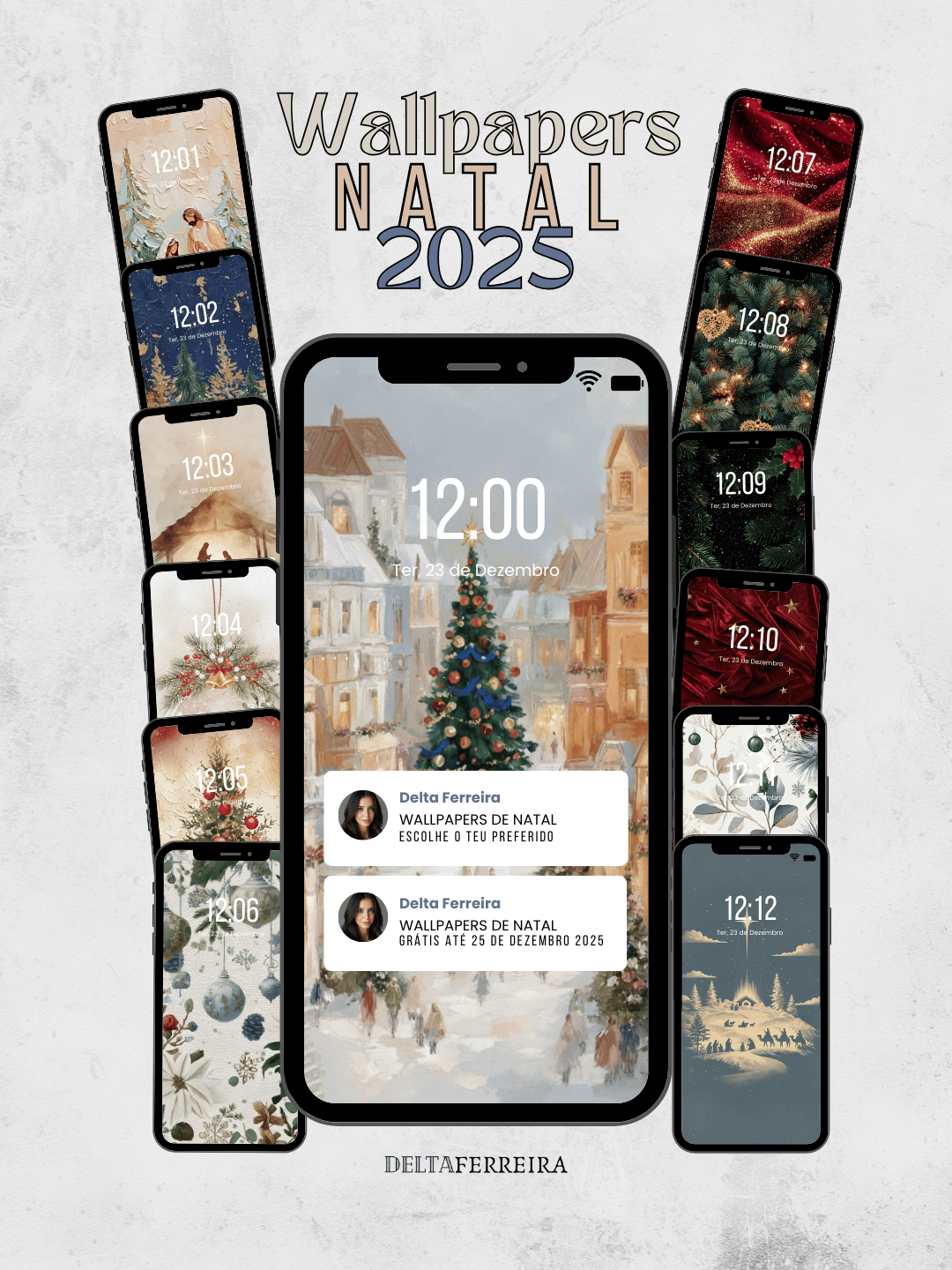 Uma coleção exclusiva de 13 wallpapers para fundo de telemóvel, criados para te acompanhar na contagem decrescente até ao Natal. Cada imagem foi pensada para transmitir aconchego, serenidade e a magia desta época: luzes suaves, tons quentes e detalhes natalícios que transformam o teu ecrã num pequeno refúgio de calma.