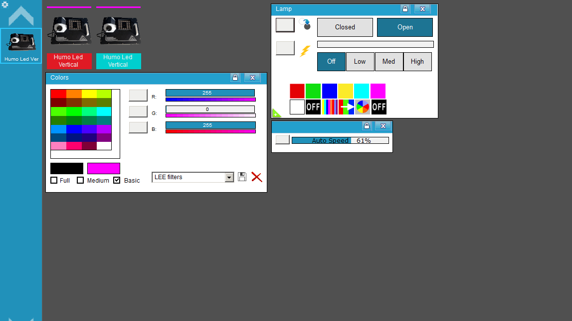 * Cambios de Colores: Encienden los Leds con cambios Automáticos y Larga Humo (desde el Slider "Auto Speed" controlan la velocidad).