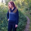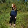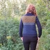 This is the kind of pullover I go to when the evenings start to get cold, and I’m looking for a little extra comfort. Like when camping, or sitting around a backyard fire pit. The stranded colourwork adds a little bit of extra warmth to the bodice, with a shawl collar for some extra coziness. The mix of Nightshades and Shelter opens up a multitude of colour possibilities.