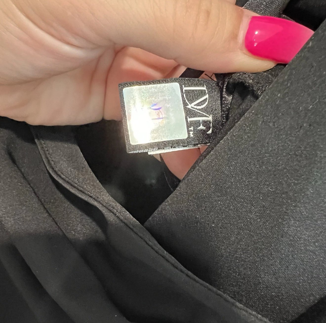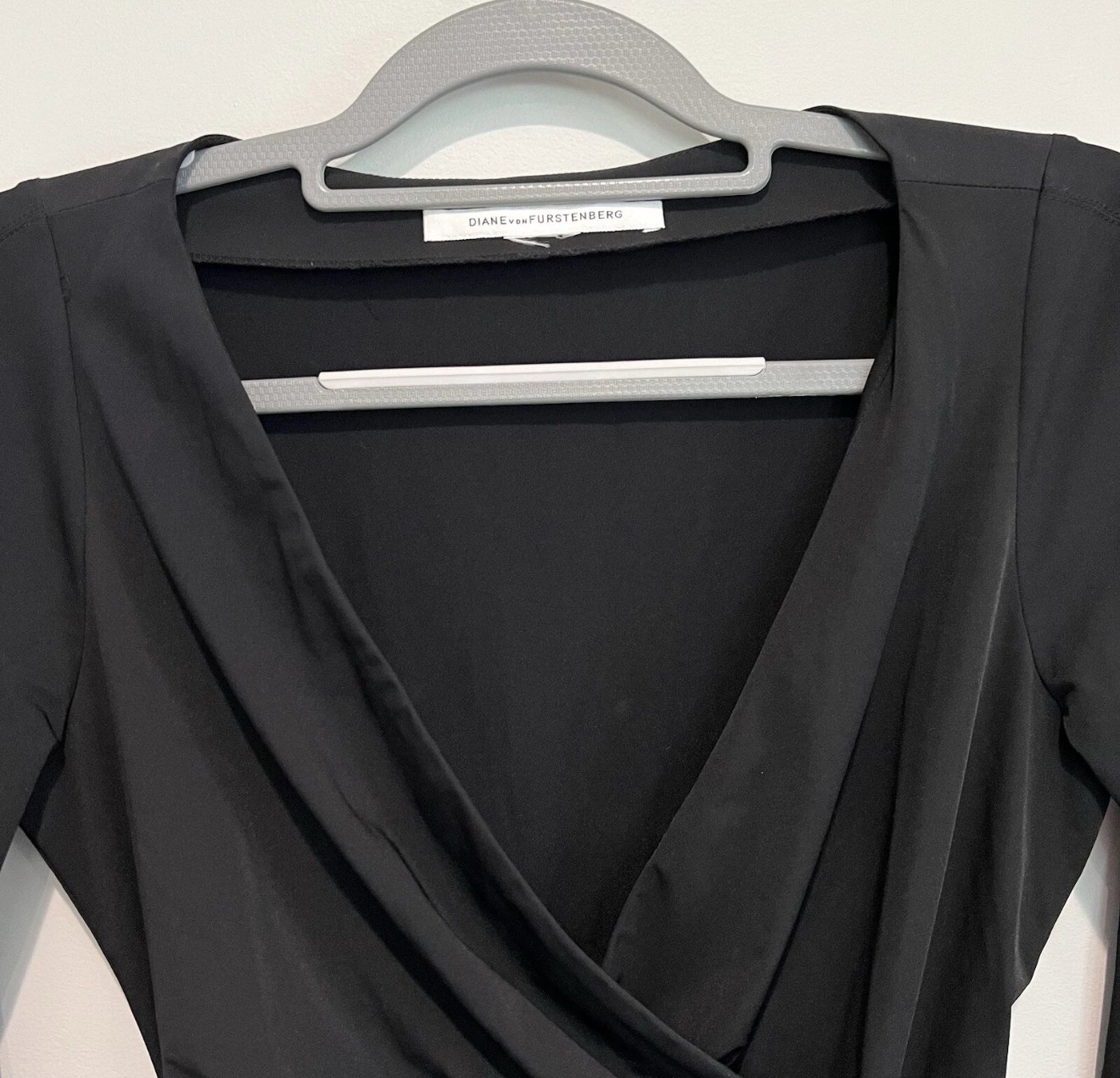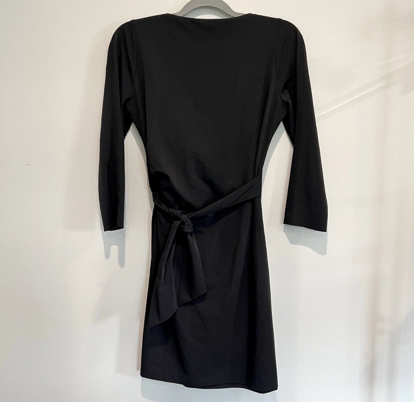 Diane Von Furstenberg Black Nylon Stretch Faux Wrap 3/4 Sleeve Dress - size Small