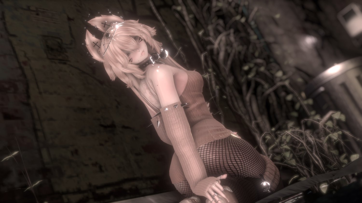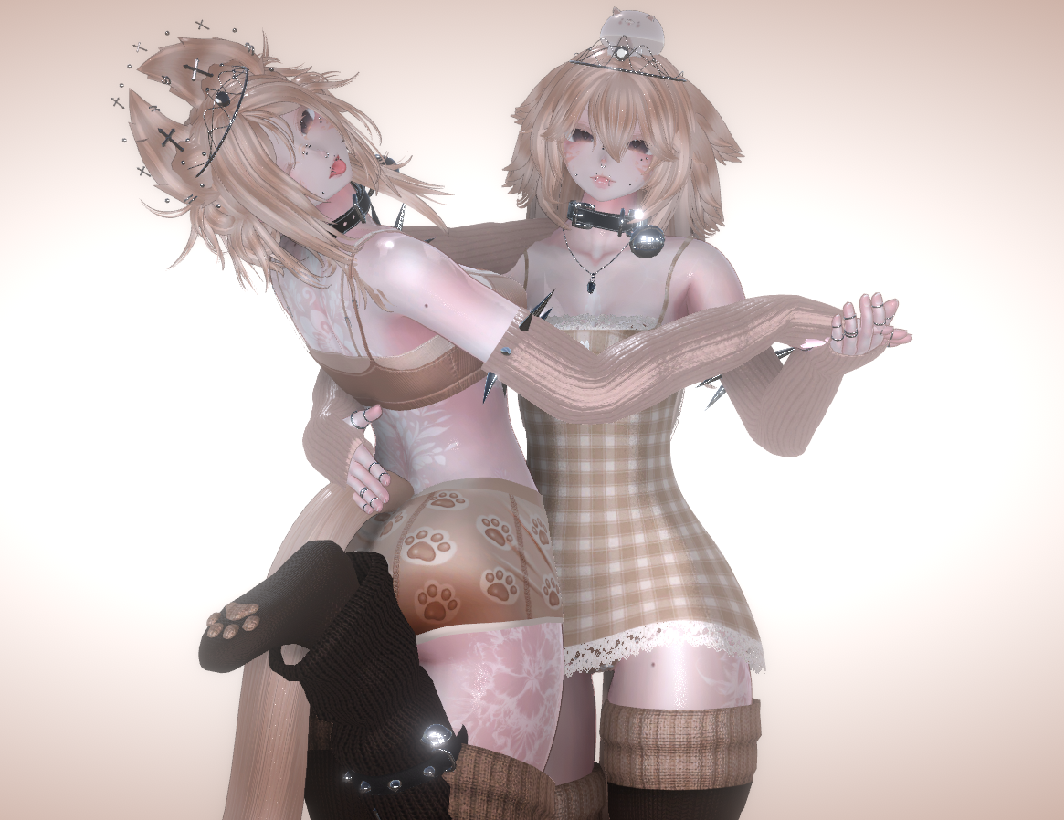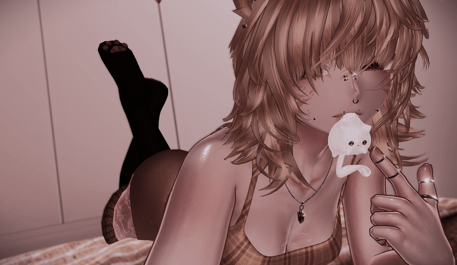 Accs: Piercings , Boots, ears 1 + tail, chubby kitty, Collar, arm warmers, socks, necklace, Tear Glasses, mouth kitty, ears 2 (long), Tiara, rings, leg warmers, worm toy