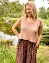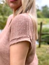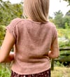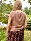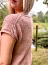 A breezy midseason tee for when the temperature is dropping but it’s not sweater weather just yet! An alpaca, linen and silk blend yarn lends a touch of warmth plus breathability for those unpredictable early fall days. Simple stockinette is embellished with vikkel (lateral) braid details at the shoulder shaping lines and hem.