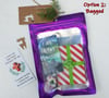 These are charming and affordable keepsake stocking stuffers. They all come packaged festively with a candy cane or holiday taffy (also available in sugar free mints!). There are three options.