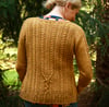 This sweater, though, just demanded to be brought to life, charts and all. It is inspired by photos of one of my favorite actors, Diego Luna, blessing us with his perfect smile while relaxing in a cozy cabled pullover. Though the basic cables are similar, once it was on the needles, this sweater became something else entirely—a cardigan, most obviously, with saddle shoulders, ¾ length sleeves, moderate waist shaping, and a traveling motif on the back that makes it stand out from traditional Aran sweaters. Diego is worked in Julie Asselin’s Nurtured, a quintessential autumn yarn with squish, structure and softly heathered hues. Rhinebeck sweater? I think so!