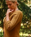 Yarn: Julie Asselin Nurtured, 100% fine wool, 130 yd/2 oz (118 m/56 g): 8 (9, 9, 10) {11, 13, 14, 16} skeins in Miel