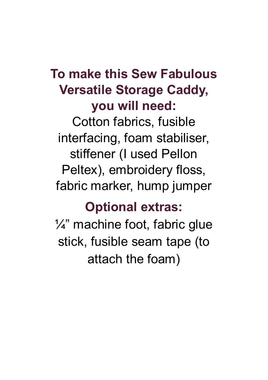 • This pattern uses both foam stabiliser and stiffener, and there is a list of different options for each, so you can use whichever brand you can get