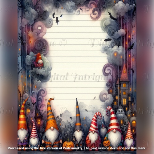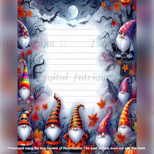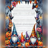 Keywords: Halloween writing paper, gnome stationery, printable Halloween paper, spooky lined paper, fall journaling pages, whimsical Halloween, cute gnome paper, autumn stationery, classroom Halloween printables, digital writing sheets, seasonal paper bundle, Halloween letter paper