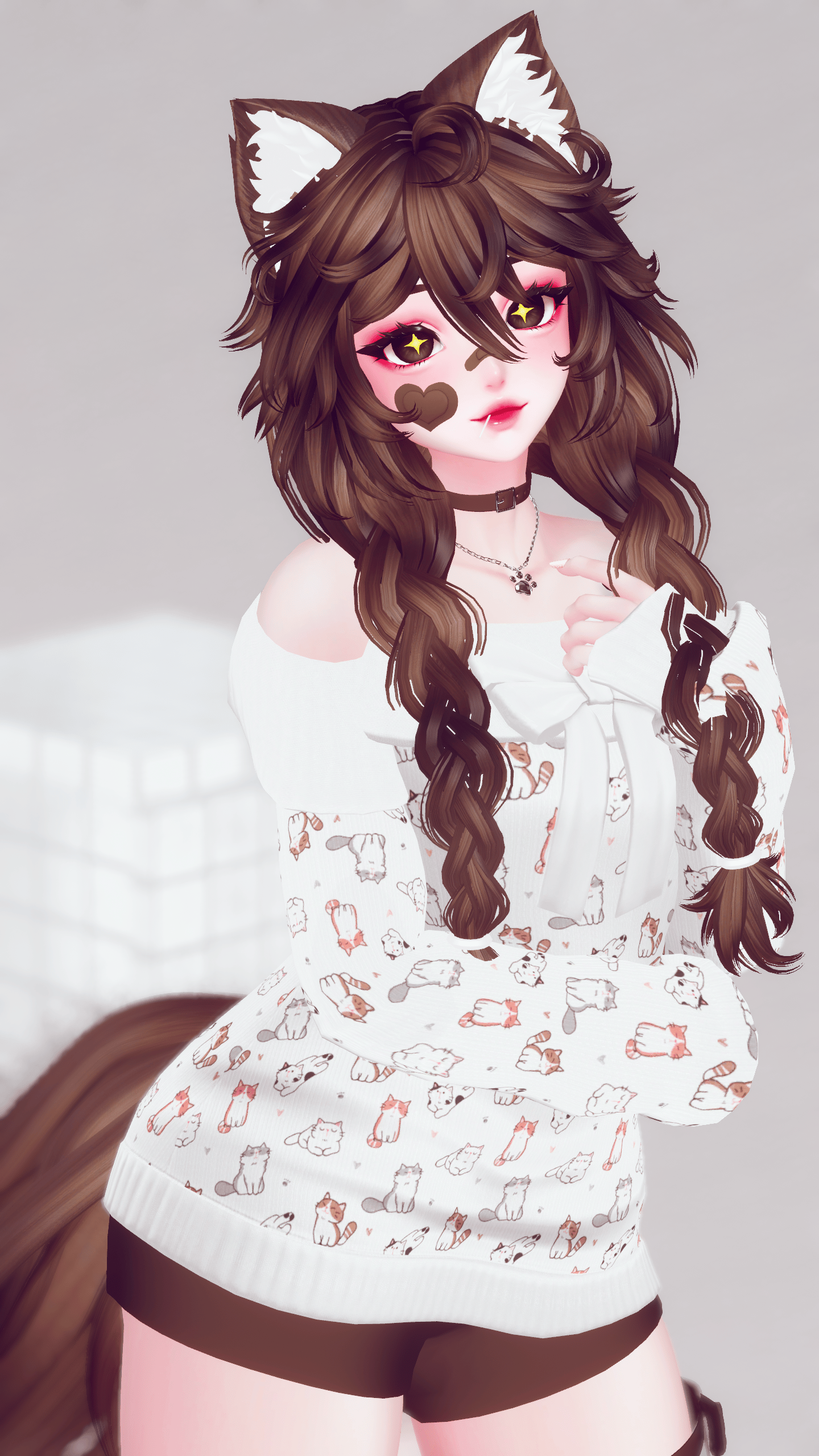 Her physbones for quest: Boobs, Butt, Ears, Tail, All hair and the Bow on her sweater! ♡