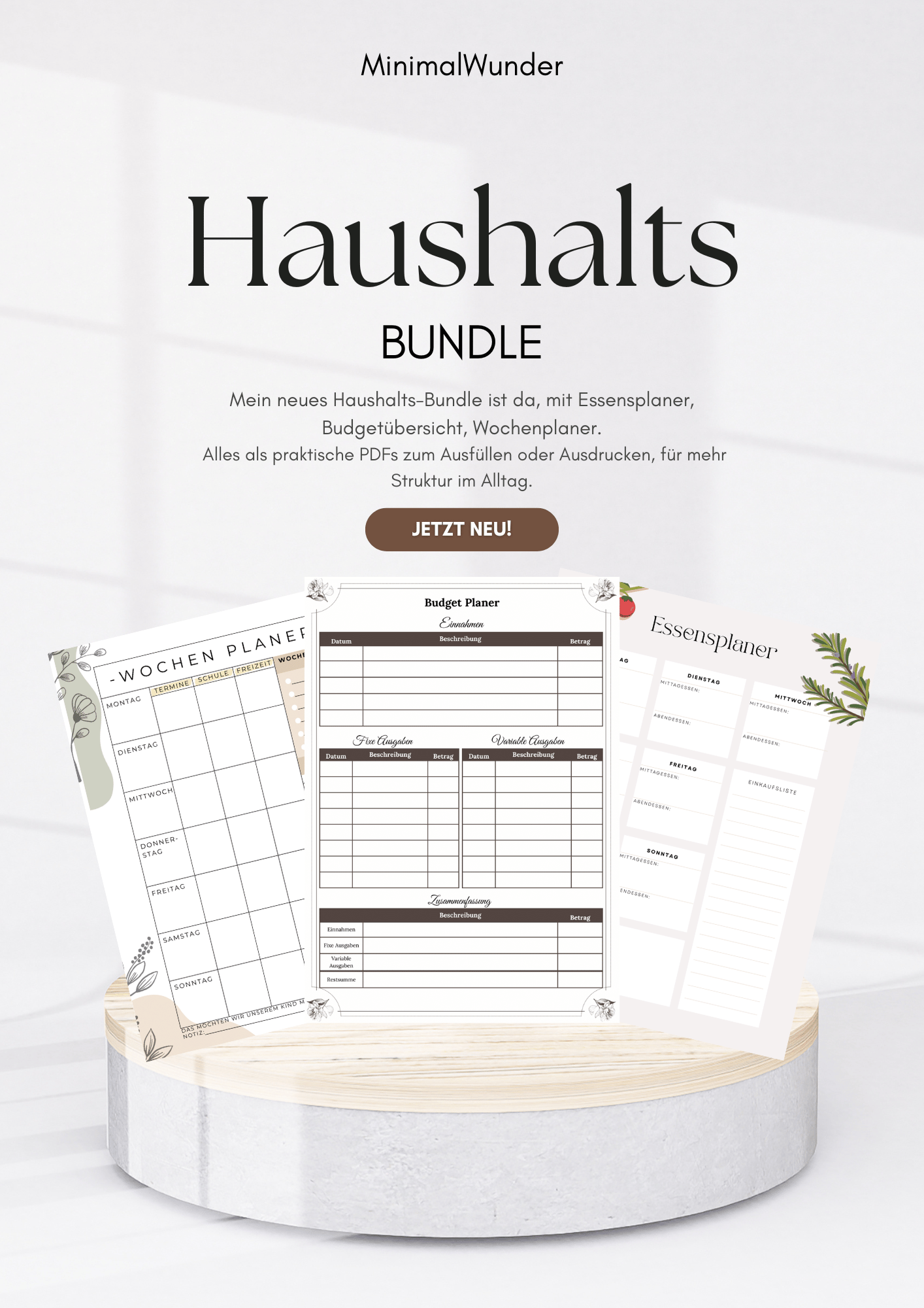Das digitale Haushalts-Bundle enthält drei praktische Planer für deinen Alltag: