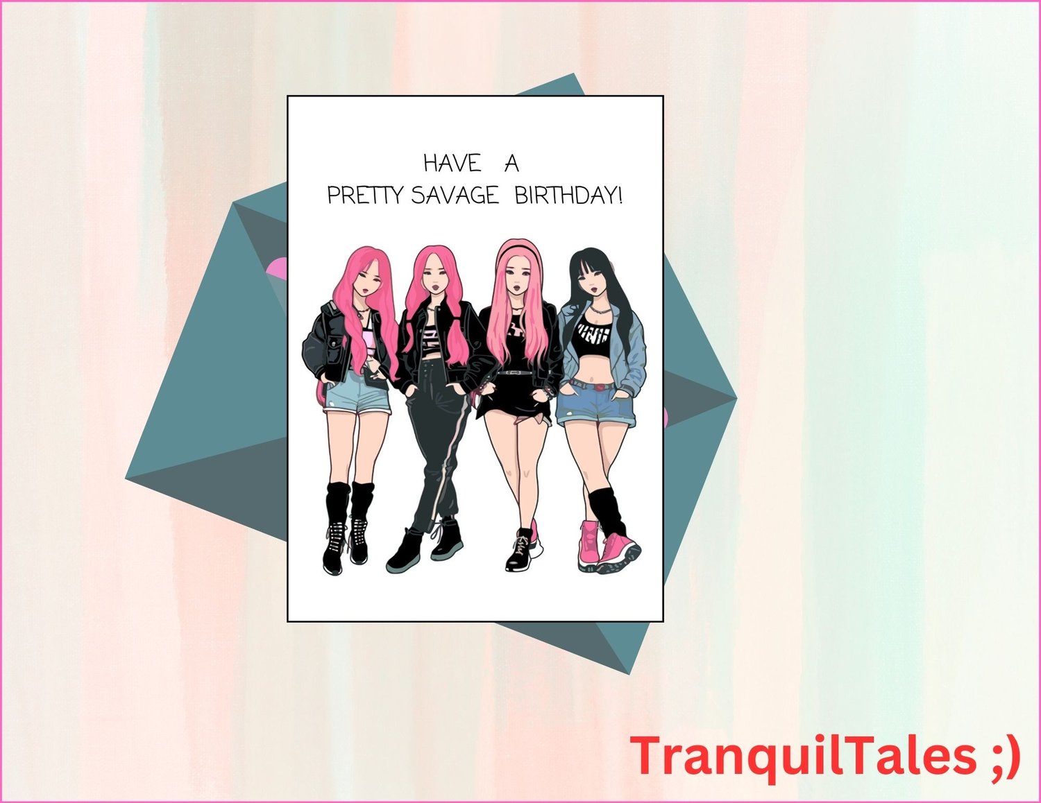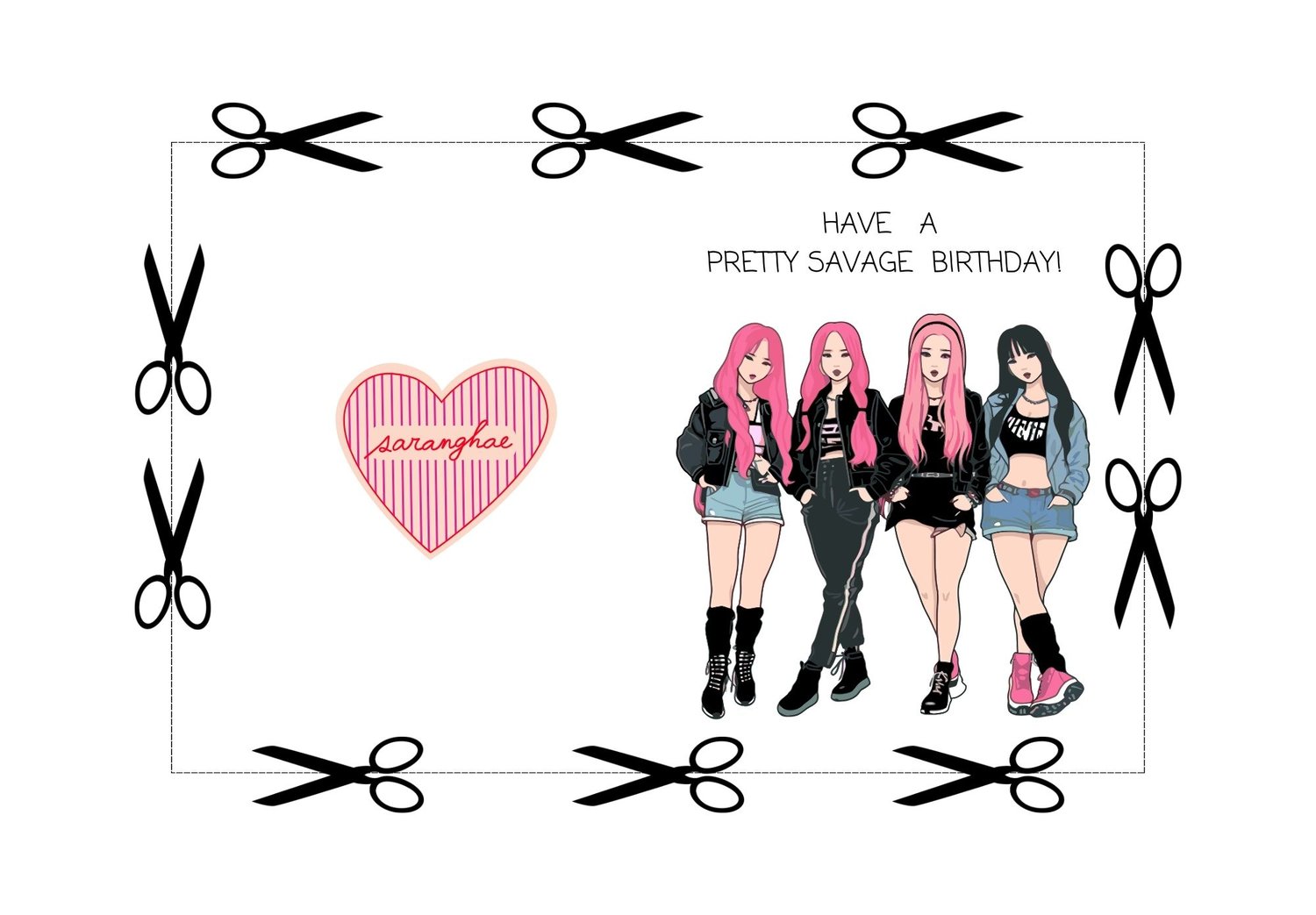 BLACKPINK BIRTHDAY GREETING - "4.25 x 5.5" & "5 x 7" - PRETTY SAVAGE - LISA - JENNIE - ROSE - JISOO - JPG & PDF