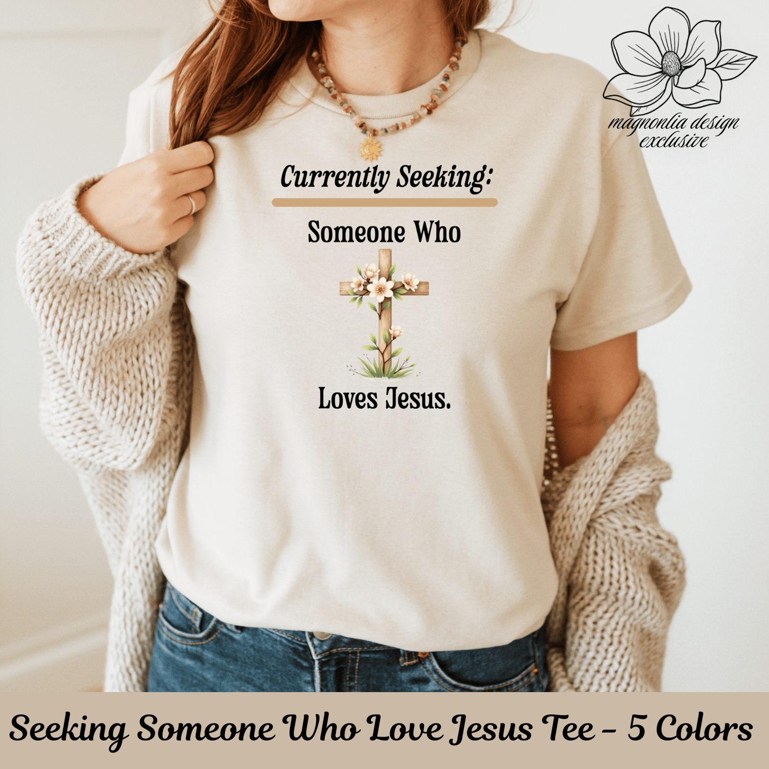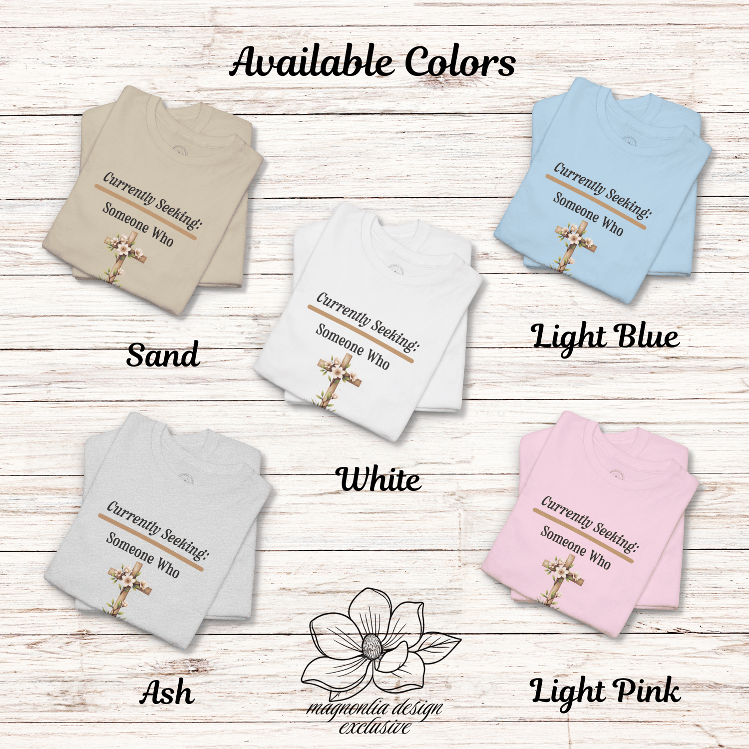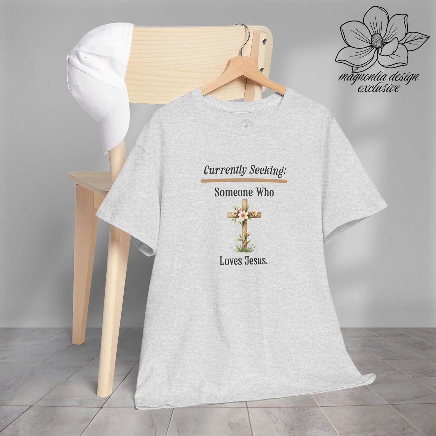 Currently Seeking Someone Who Loves Jesus, Unisex Tee, Christian Gift, Faith-Based Clothing, Religious T-Shirt, Casual Wear