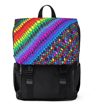 Casual backpack in a classic shape with a front flap design. It is made of durable Oxford canvas. It has two slip interior pockets and one laptop sleeve in the main compartment, a front zipper pocket, and two side pockets. .: Made of 24.34 oz. Oxford canvas .: Flap with strap claps at the front .: Adjustable shoulder straps .: Black base and inside color
