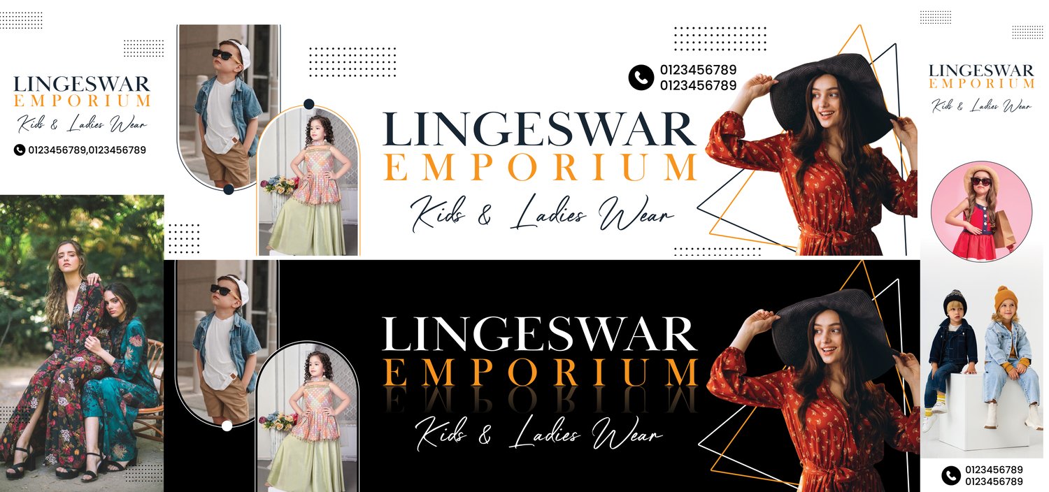 Stop wasting time and money on expensive custom designs. Give your kids' and ladies' wear boutique a professional, cohesive identity in minutes with this ready-to-use "Lingeswar Emporium" Pro Template Pack.