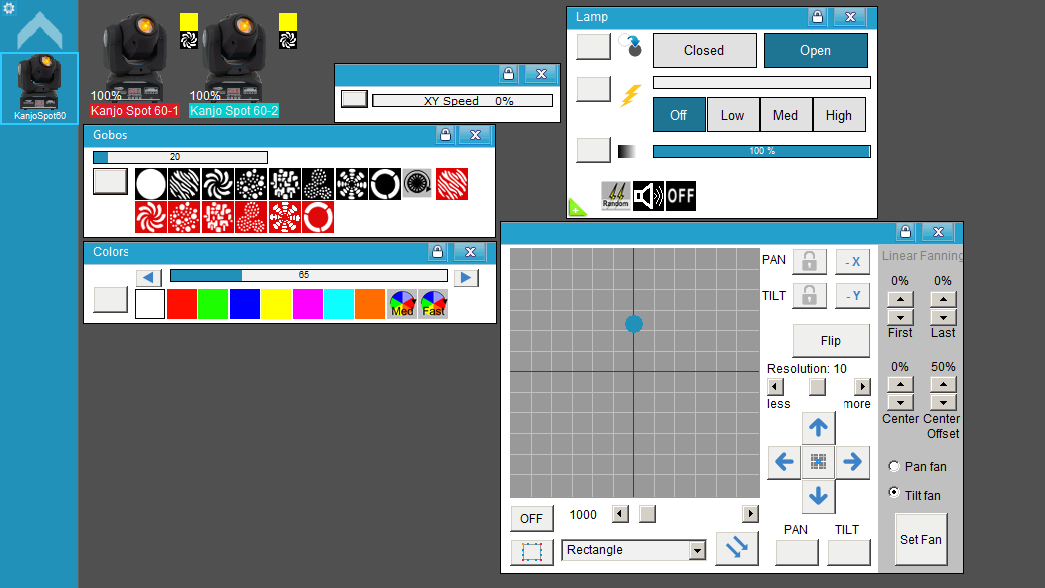 Fixture de Freestyler DMX para el Cabezal Móvil "Kanjo Spot 60" de Showtec ( 8-10CH ).