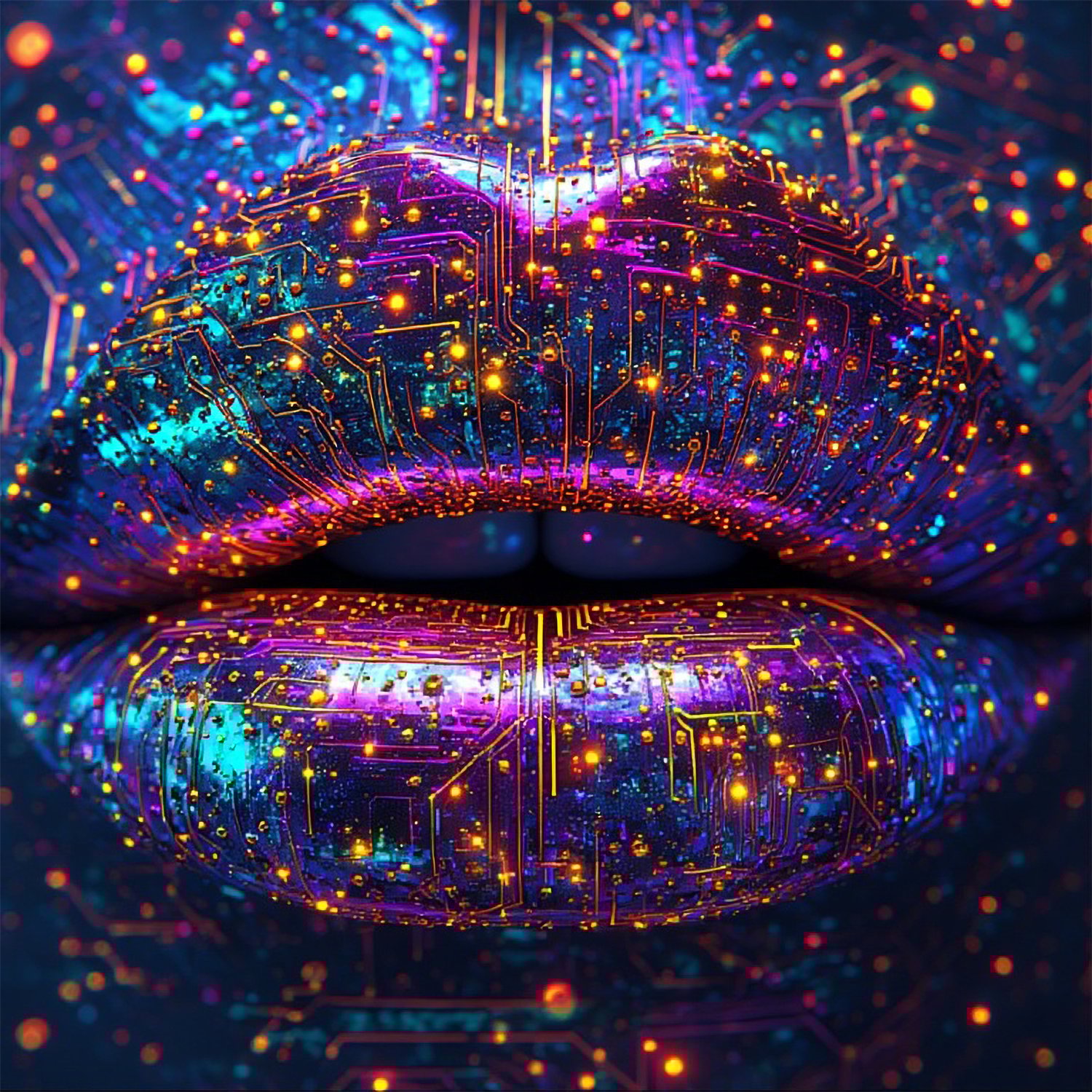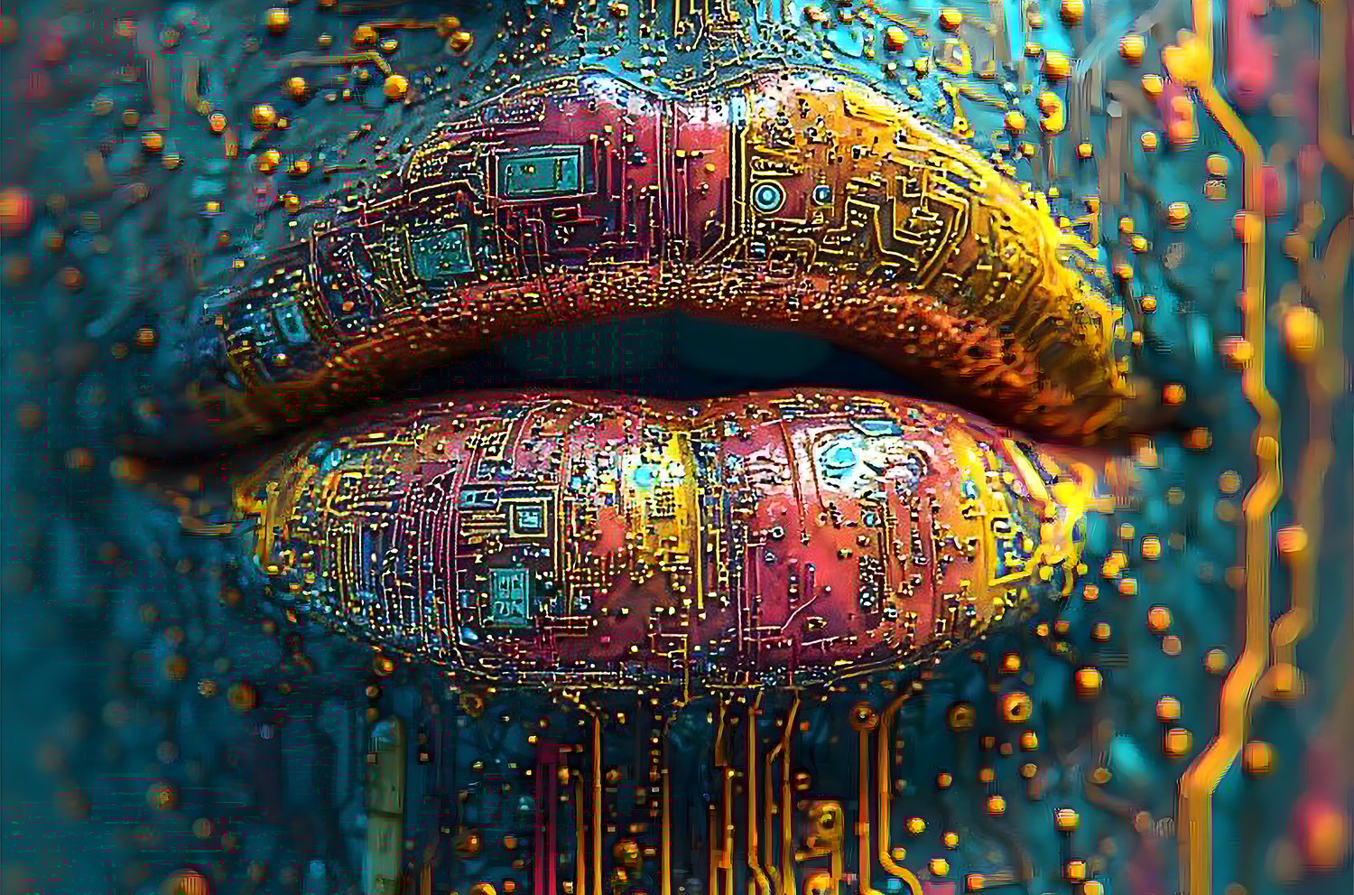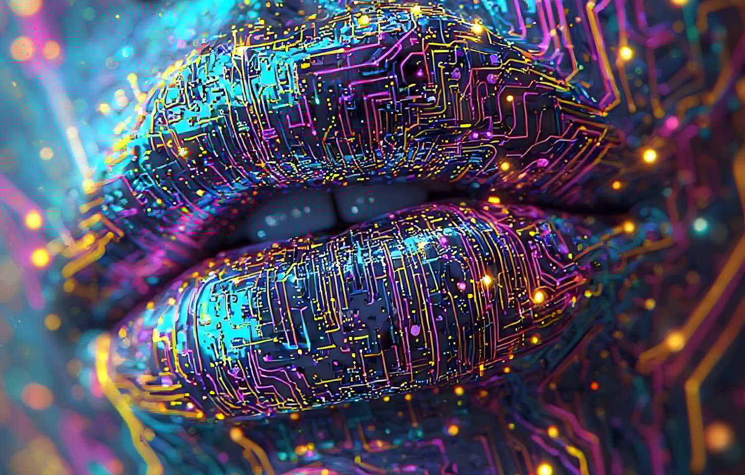 Digital themed colorful lips - AI generated.