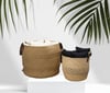 Discover the Heartfelt Tote Duo, a pair of elegantly crafted baskets designed to carry your essentials with sophistication. The larger basket features a spacious interior lined with soft cream fabric, perfect for accommodating your daily items. The smaller basket boasts a chic black lining and an intricate diamond weave pattern, offering a stylish solution for securing your valuables. Crafted from high-quality, durable materials in a warm tan hue, these baskets exude natural charm and are ideal for the fashion-forward individual seeking functionality and style. Available exclusively at malldeheartbreak, they’re the perfect accessory for any occasion.