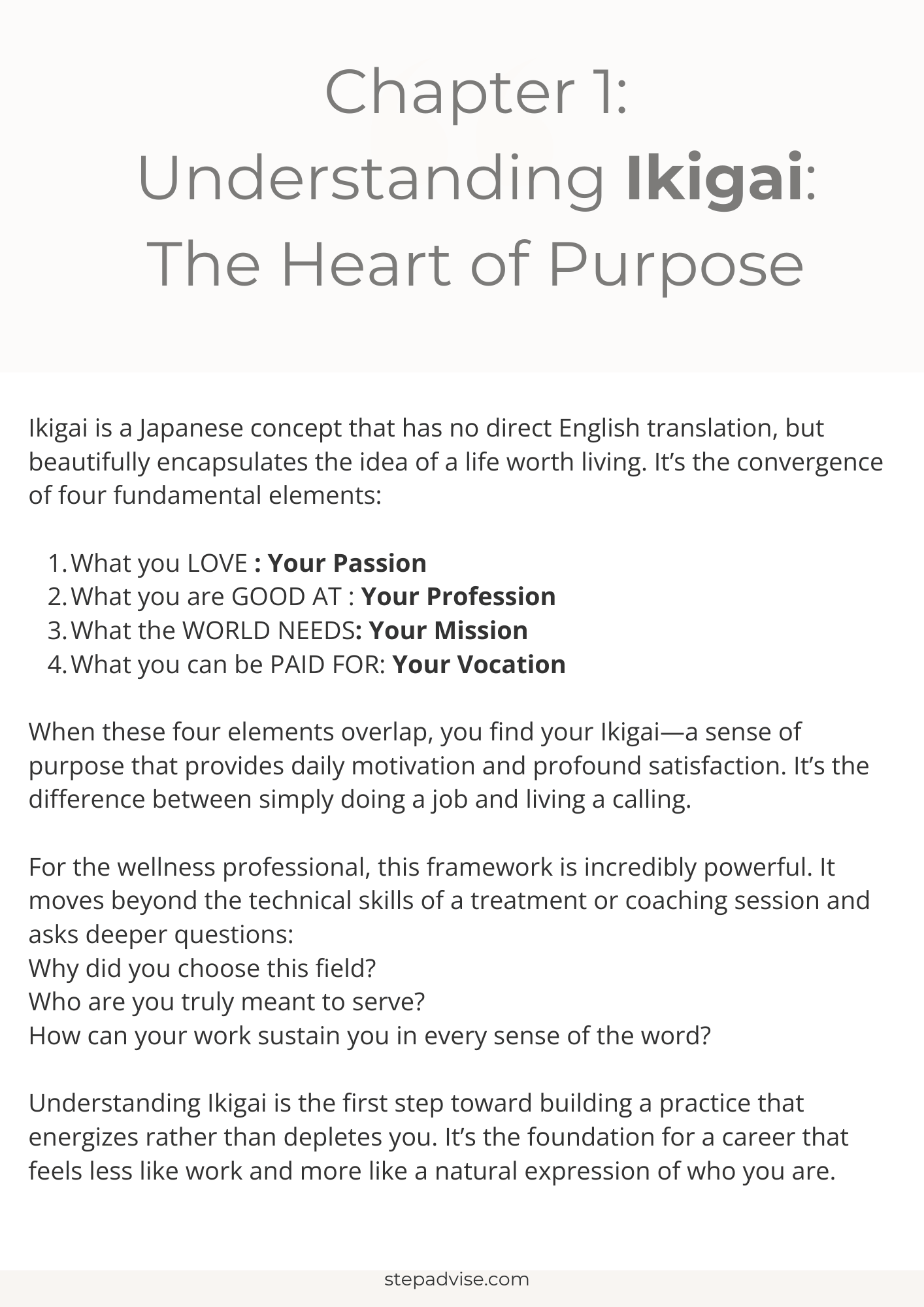 Discover Your IKIGAI in Wellness: A Step Ahead Guide to Purpose-Driven Practice (PDF eBook)