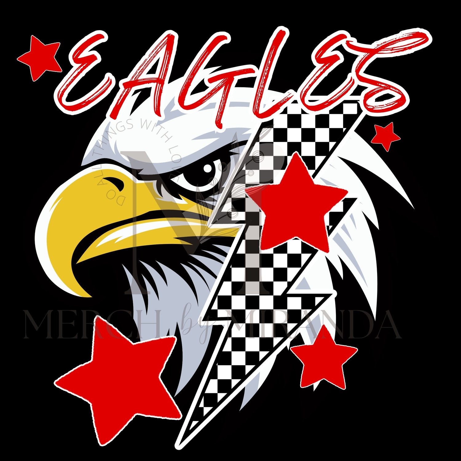 Eagle Mascot Red | Sublimation Design | Digital Download | School Spirit Shirt PNG | DTF Design | Lightning Bolt-Checkered with Stars - Eagles